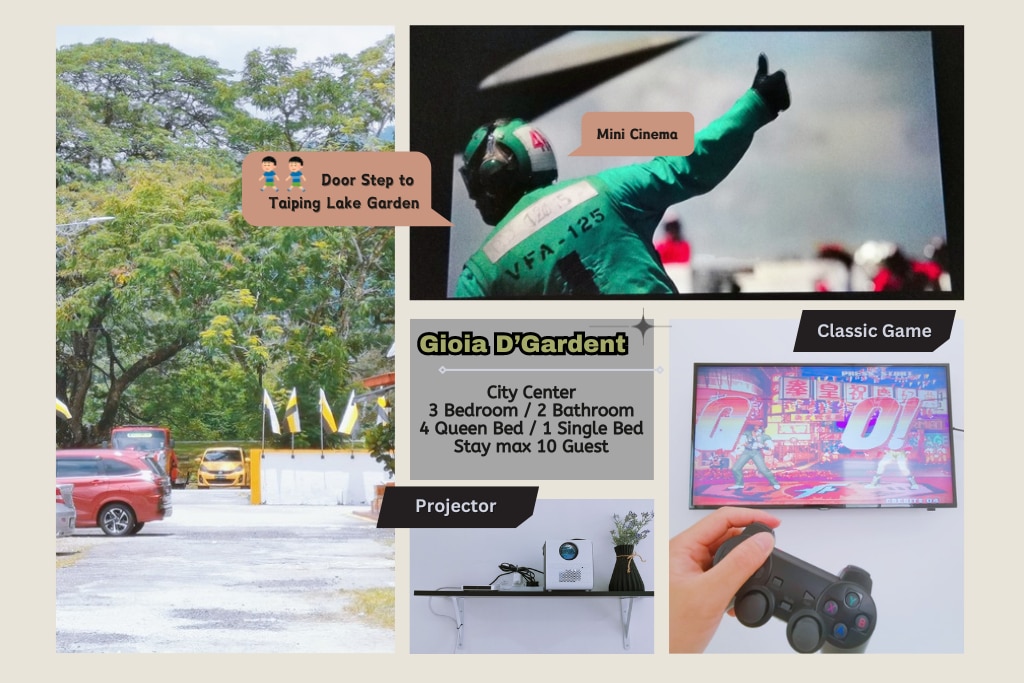 Welcome to our stylish brand-new vacation home in the heart of Taiping, just 2 minutes from Aeon Mall. Whether you are here with family or friends, this cozy home offers everything you need for a relaxing and memorable stay. Situated in a peaceful and safe neighborhood with ample parking, our home is perfect for guests who want convenience without sacrificing tranquility. We look forward to hosting you and making your Taiping trip a wonderful experience!
