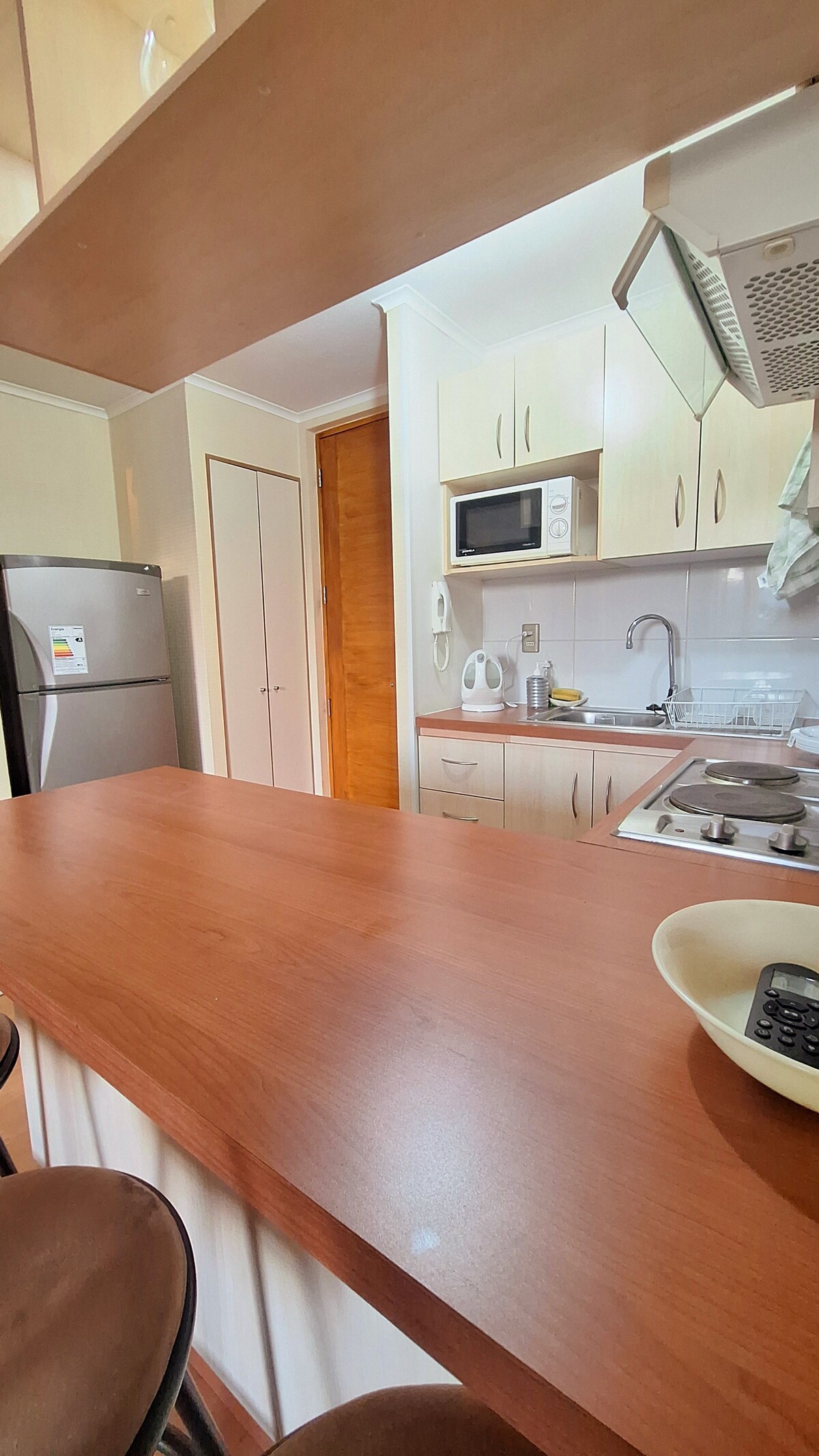 Красива квартира з гарним видом, ідеально підходить для подорожей або роботи! Розташоване в безпечному кондомініумі в секторі Лас-Растрас, за 3 хвилини від торгового центру Plaza Maule та казино. Тут є: -scensor, pool, quincho -1 стоянка -1 спальня з 2-місним ліжком - Прогулянка в шафі з 1 суміжною ванною кімнатою. -Повністю обладнана кухня - Вітальня/затишна їдальня. - Терраса з прекрасним краєвидом