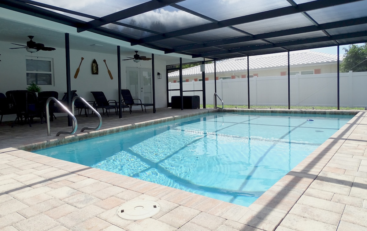 Затишний тропічний відпочинок всього в 4,6 милі від аеропорту Сарасота і в 7 милях від пляжу. Ідеально підходить для двох! Насолодіться приватним басейном, повністю обладнаною кухнею, зручним ліжком, швидким Wi-Fi та безкоштовним паркуванням. Відпочиньте у власному затишному просторі на свіжому повітрі та відчуйте тропічну атмосферу. Ідеально підходить для романтичного відпочинку, вихідних на пляжі або просто для відпочинку в унікальному та приватному оточенні.