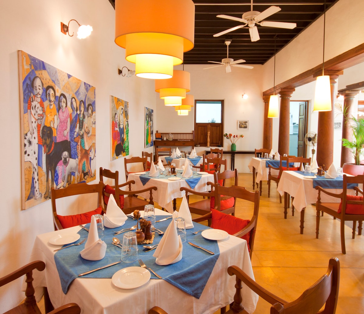 Це віковий особняк європейської сім 'ї, який тепер відкритий для туристів. Цей історичний готель Seeped в історії, цей історичний готель у Кочіні повертає вас у часі з підлогою з тикового дерева, високою дерев 'яною стелею, звивистими сходами, величезними європейськими вікнами та іншим. Ми пропонуємо щось для всіх - хорошу їжу, кімнати для спадщини, затишну бібліотеку та художню галерею. Ми відомі тим, що подаємо найкращі морепродукти в Кочіні.
