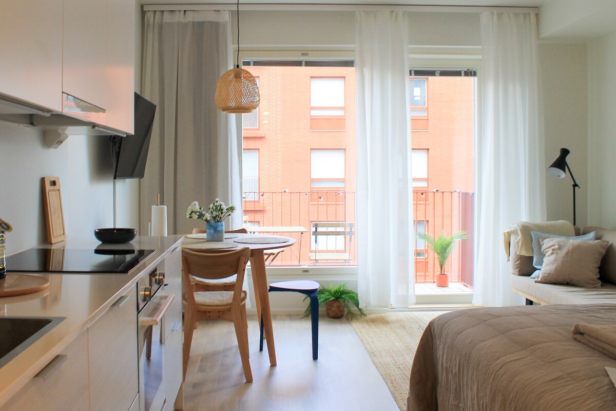 Ласкаво просимо до цієї чудової квартири-студії біля озера Несіярві! У цій затишній квартирі в стилі пляжного будинку ви зможете насолодитися всіма зручностями. Стильно оформлена та повністю обладнана кухня зробить ваше перебування безтурботним. На балконі можна насолодитися ранковою кавою та милуватися прекрасними краєвидами. Район Ранта-Тампелла пропонує красиві пішохідні маршрути на березі озера Несіярві та знаходиться недалеко від центру міста. Ласкаво просимо