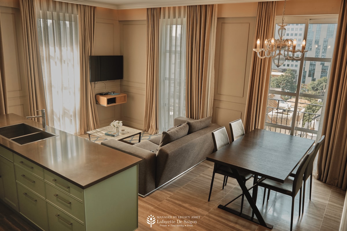 Ласкаво просимо до нашої прекрасної квартири в Хошиміні! Відпочиньте всією сім 'єю в цьому спокійному місці для розміщення. У помешканні наповнене природним освітленням, стильною меблями та зручними ліжками. Розташований у центральному районі району 1, ви можете швидко дістатися до ринку Бен-Тхань (Чантх), собору Нотр-Дам, Палацу Незалежності, парків ... Він спокійний, просторий і повністю укомплектований, щоб ви почувалися комфортно під час перебування. ДУЖЕ БЛИЗЬКО ДО ЦЕНТРУ МІСТА, БІЛЯ РАЙОНУ 1