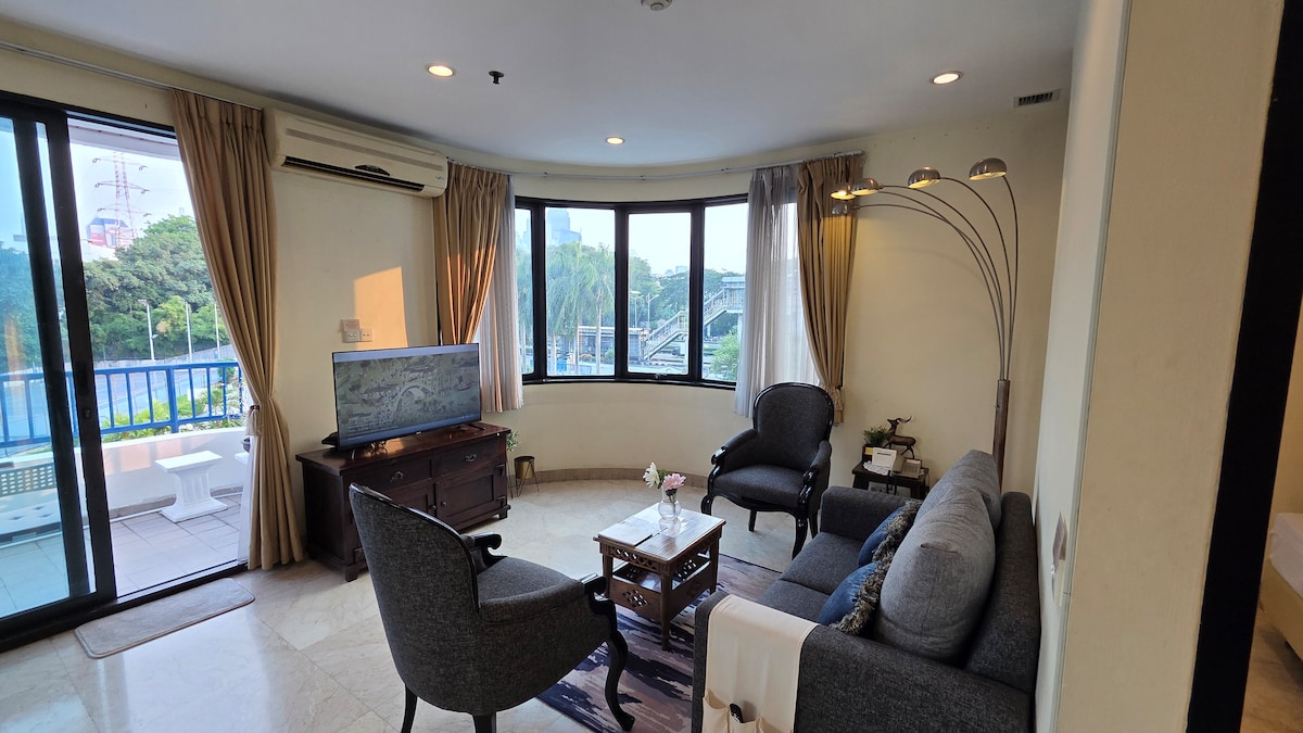 Luxury & central loc next to Grand Indonesia Mall You can enjoy premium living, peaceful surrounding, and Jakarta view from above : - Walking distance to Grand Indonesia & Business District - Easy access to lifestyle tenant & trasportation - Fitness | Yoga | Jacuzzi | Swimming Pool | Kids pool & playground - Bike rent About the unit : - Queen size bed | 2 sofa beds - Kitchen set with cookingware - SMART TV for Netflix - Balcony with river view this is trully your #comfortzoneliving ⭐️