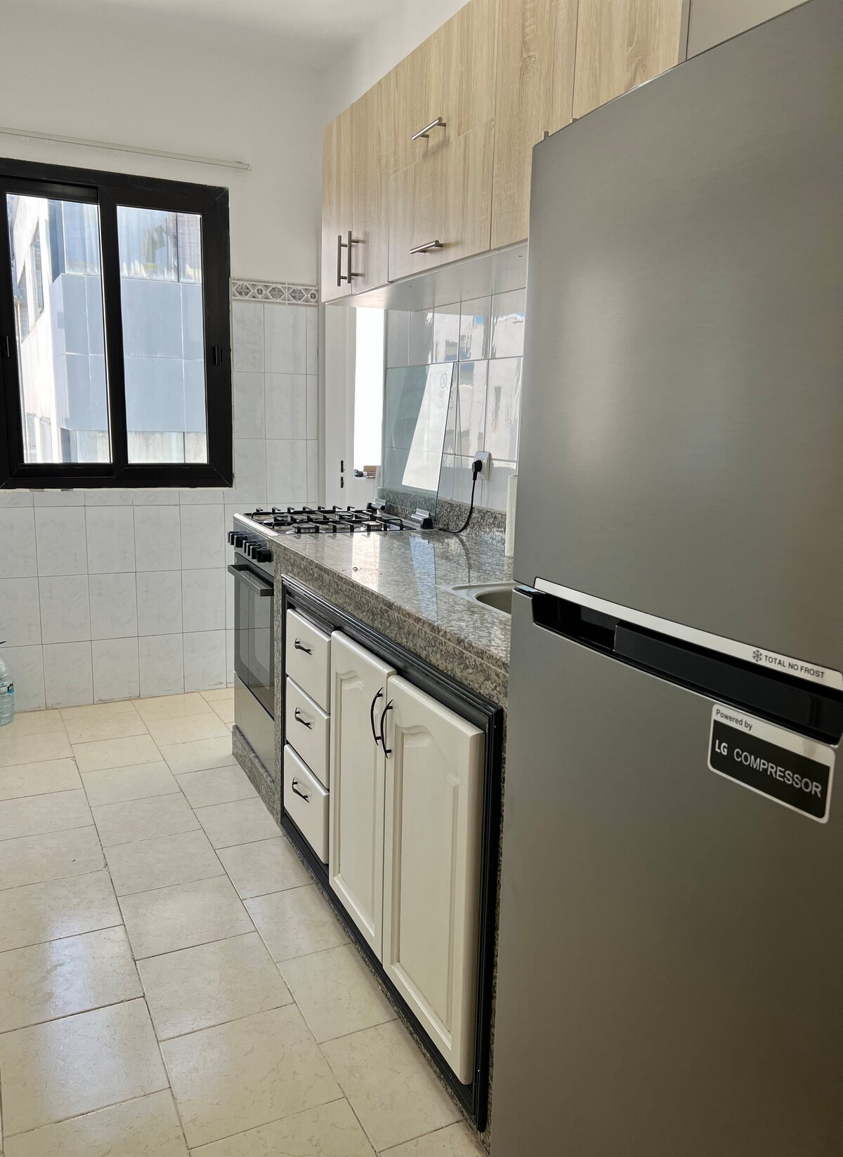 Bienvenue à Tanger ! Appartement lumineux de 2 chambres avec un balcon dans la chambre parentale et un autre dans la cuisine, idéal pour un séjour en famille. À 5 min de l’aéroport, de la plage Sidi Kacem et de la gare routière, et à deux pas de la cité sportive (200 m piscine, 300 m stade), parfait pour les événements sportifs. Parking privé, fibre, coin café. Confort pour 4 + bébé (lit, chaise haute).