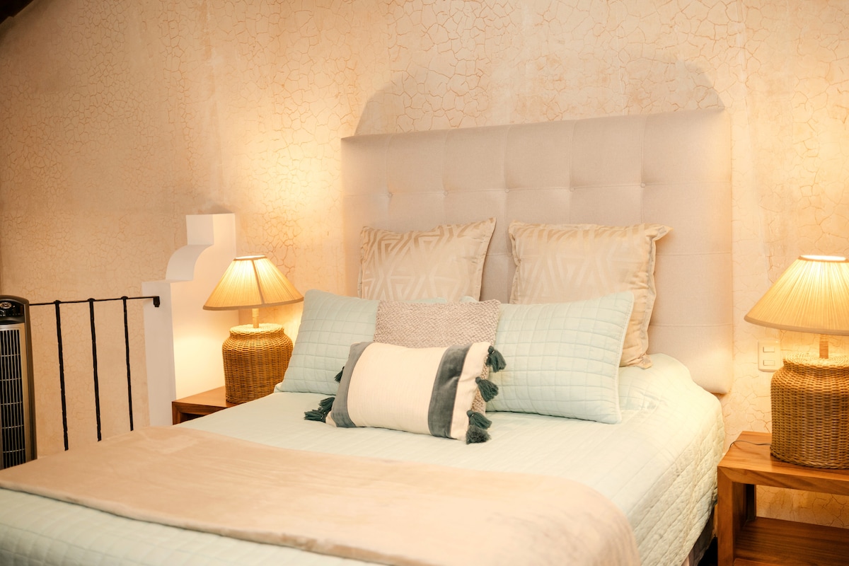 Our property has a total of 10 wonderful boho-style accommodations, walking distance to all major places of interest in Antigua Guatemala. The setting will bring a cozy and relaxing vibe with all the amenities for a pleasant stay. The space provides plenty of outdoor lounge areas to choose from. We offer several bed distribution options, from 2 double or Queen size beds to 1 king size bed. Multiple accommodations can be booked together. Please ask for availability.