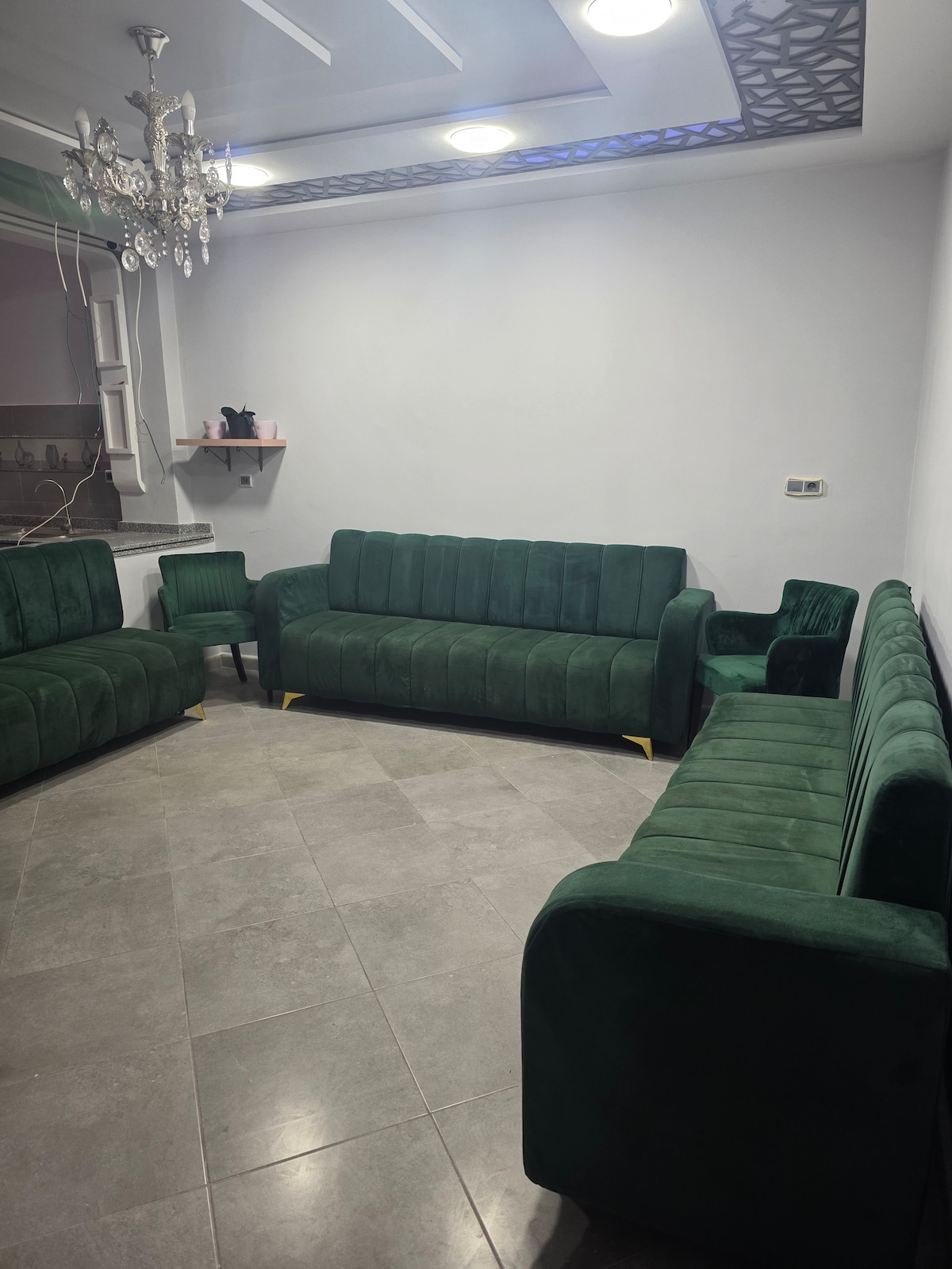 Découvrez cet appartement spacieux et moderne, idéal pour un séjour agréable. Il comprend 3 chambres, chacune équipée d’un lit confortable, et un salon accueillant avec des fauteuils et une télévision pour vos moments de détente. La cuisine est entièrement équipée pour répondre à tous vos besoins. L’appartement dispose également de la climatisation, d’une salle de bain avec douche, de toilettes séparées et d’un balcon offrant un espace extérieur agréable. Parfait pour votre confort.