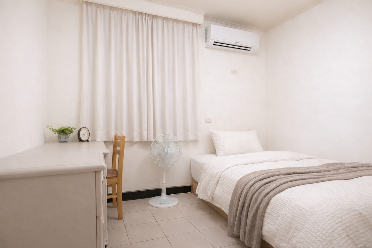 Будинок розташований в центрі Банцяо, місто Новий Тайбей, недалеко від міста Банцяо, швидкісної автомагістралі, автовокзалу, автовокзалу, залізничного вокзалу та лінії MRT Pananan (Xinpu), в 2 хвилинах ходьби є громадська платна крита парковка та парковка на узбіччі дороги, 200 метрів і 4 хвилини пішки, це автобусна зупинка та станція MRT Xinpu, вихід 2, Ятанцяо, храм Луншань, Ximen, станція Taipei, Taipei101, транспорт зручний для відвідування різних пам 'яток. Будинок розташований на 2-му поверсі квартири в старому районі, немає ліфта, потрібно пройти всього 16 сходинок, район безпечний, тихий і простий, помешкання обладнане герметичними звукоізольованими вікнами, не турбуйтеся про спокій під час сну, є кафе, супермаркет, салон краси, магазин для зручного побуту. Внутрішній простір складається з 3 спальних кімнат (A. кімната на 4 особи з 2 двоспальними ліжками, B. кімната на 2 особи з 1 двоспальним ліжком, C.Тематична дитяча кімната (1 стандартне односпальне ліжко), 1 вітальня, 1 їдальня, 1 кухня, 1 ванна кімната з туалетом, 1 робочий балкон (зона для куріння) з безкоштовною пральною та сушильною машинами, простір близько 100 м ². Будинок обладнаний енергозберігаючими системами охолодження та опалення (2025/3/17), 43-дюймовим смарт-телевізором з Інтернетом, безкоштовним Wi-Fi та кабельними програмами, а також шампунем, милом для тіла, кондиціонером та милом для рук, а також 1 рушником для ванни на особу.(Згідно з екологічними нормами, зубну щітку, зубну пасту, бритву, гребінець потрібно привезти з собою) Просторе та комфортне житлове середовище, щоб ви могли відчувати себе як вдома під час подорожі.