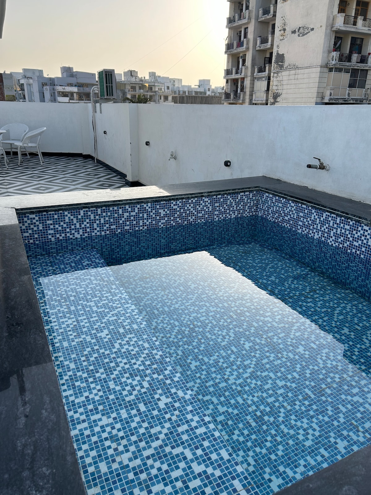 ✨ Stylish 2BHK with Pool, Terrace & BBQ – Perfect for Getaways & Celebrations! ✨ Welcome to your home away from home — a beautifully designed 2-bedroom, 2-bathroom aesthetic stay, perfect for relaxing weekends, extended stays. This thoughtfully crafted space features: 🏡 2 Spacious Bedrooms 🛁 2 Bathrooms 🏊♂️ Refreshing Swimming Pool 🔥 BBQ Area 🌿 Terrace Sitting Area with fairy lights, Optional services: Swimming Pool filling charges: Rs 300 BBQ charges: Rs 250 (2kg coal).