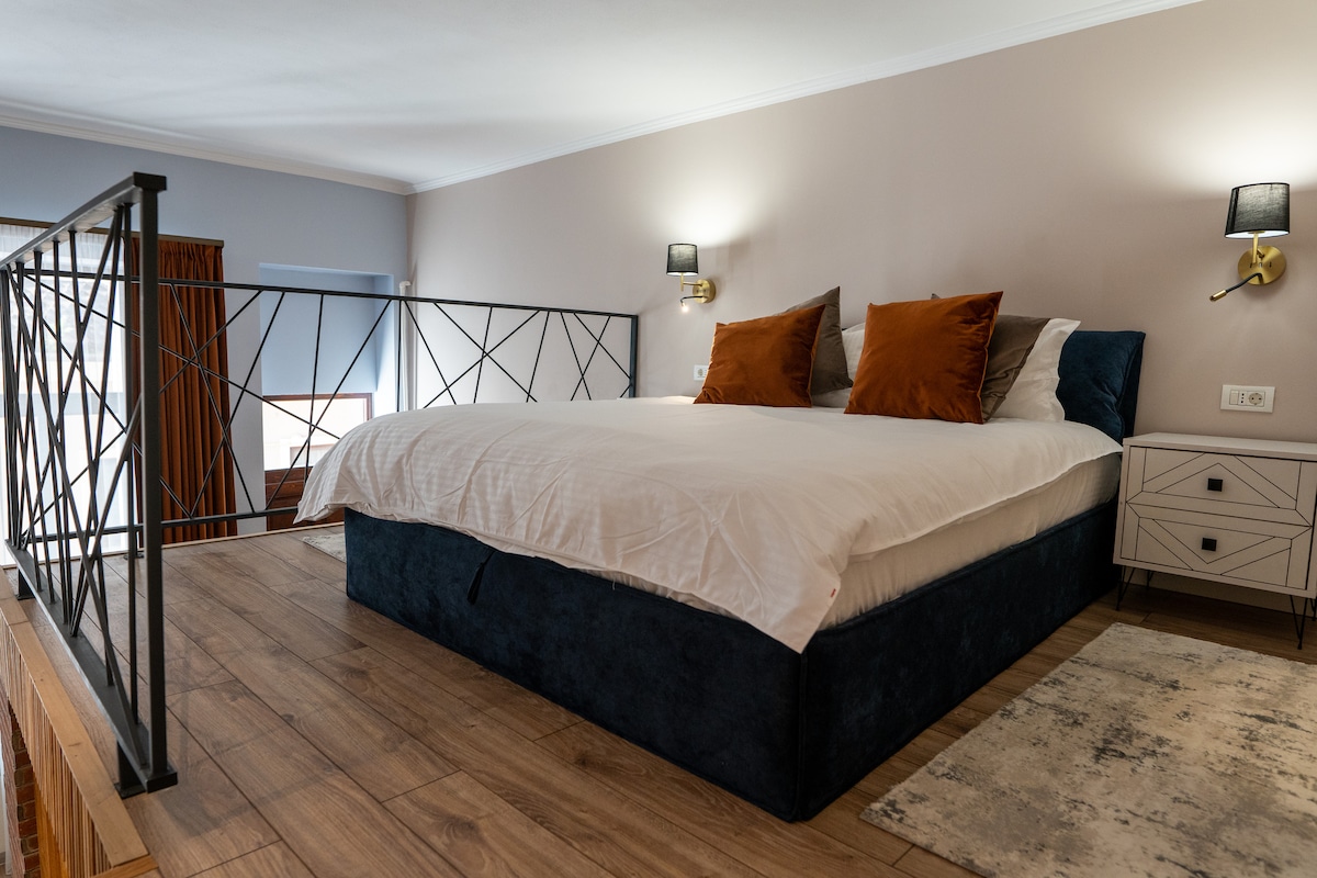 Проведіть своє перебування в сучасній ультрацентральній квартирі-лофті, розташованій в центрі Брашова. Це стильне помешкання з високими стінами пропонує комфорт і стиль, ідеально підходить для відпочинку. Оснащена всіма сучасними зручностями та великою кількістю природного освітлення, ви будете всього в декількох кроках від основних туристичних об 'єктів у центрі Брашова: ресторанів, кафе, музеїв. Ідеально підходить для пар або бізнес-мандрівників, щоб отримати незабутні враження від міста біля підніжжя Тампи.