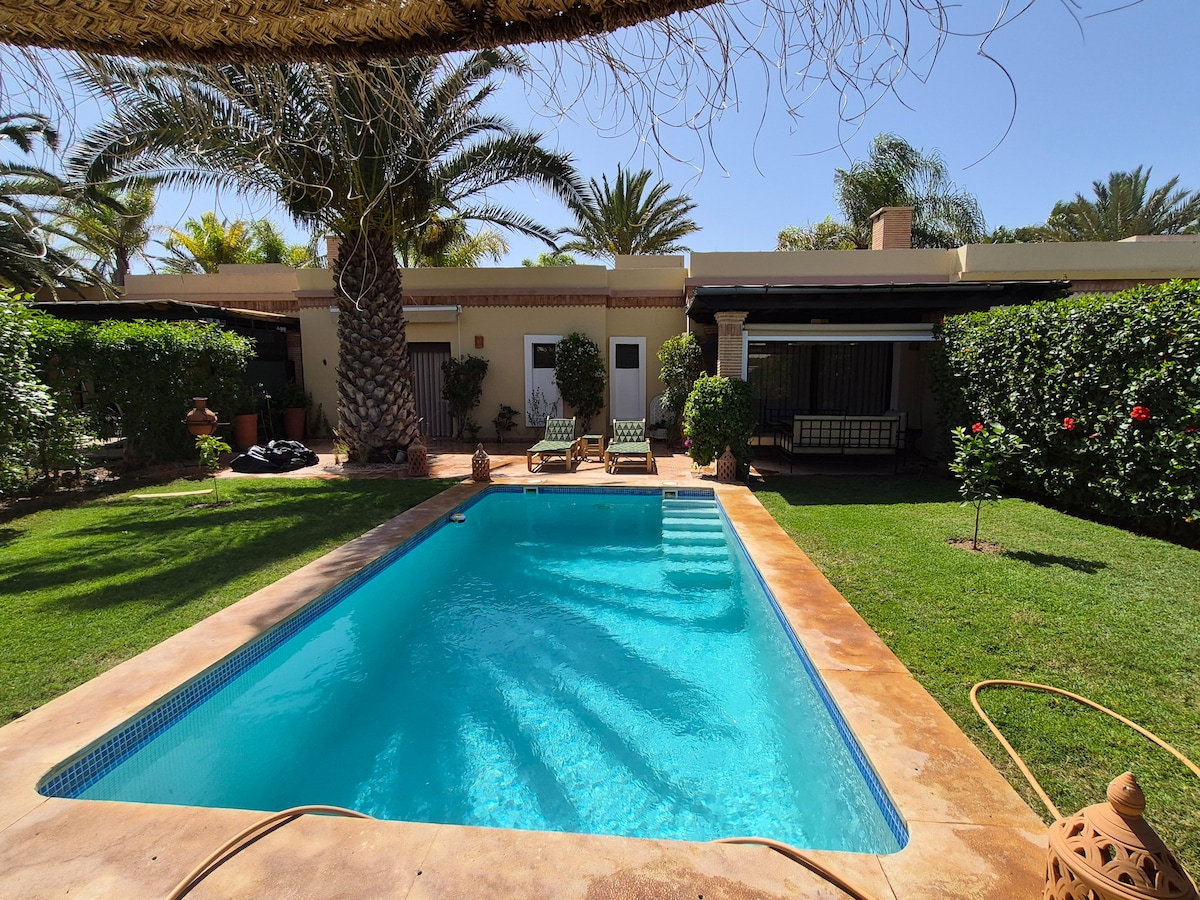 Красива вілла в оренду з басейном, не з видом на Orangeraie de Dyar Shemsi. 3 кімнати: вітальня, відкрита кухня, дві спальні, ванна кімната, патіо, дві тераси, великий сад. Вілла розташована в безпечному маєтку в 35 хвилинах їзди від Агадіра! Доступно в помешканні: - Тренажерний зал. - Тенісний корт - Golf pratice - Стіл для пінг-понгу - Спільний басейн. - Салон краси - Продуктовий магазин - Буксерф. - Кілька озер - Прогулянка - Безкоштовна послуга гольфу.