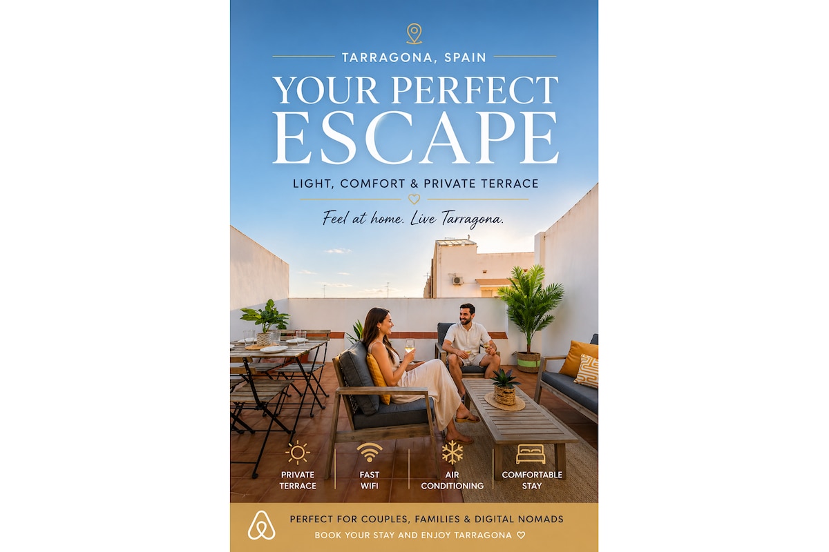 Чарівний пентхаус із терасою, повністю відремонтований і розташований у центрі старовинного міста Таррако. Поруч із цирком, стінами, амфітеатром із панорамними краєвидами та площею Пласа-де-ла-Фонт, центром святкових заходів і справжніх традицій Таррагони. Ви зможете пішки відвідати пам'ятки Всесвітньої спадщини. Зручне сполучення, щоб дістатися до пляжу. Туристичний збір у розмірі 1,75 євро з особи за ніч не включено до вартості, і його потрібно сплатити під час прибуття.
