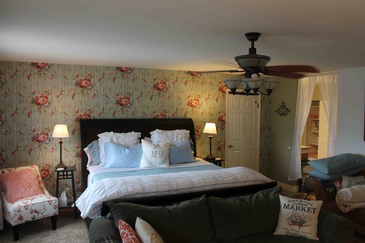Відпочиньте в нашому повністю приватному гостьовому номері! Це забезпечує комфортне перебування в готелі за набагато нижчою ціною. Ми надаємо парковку на під 'їзді, окремий вхід до вашого помешкання, затишне ліжко California King size, розкішний тропічний душ, шафу, міні-кухню, оптоволоконний Інтернет та смарт-телевізор. У номері є додаткове ліжко для молодіжного розміру та манеж. Ми пишаємося супергосподарями і робимо все можливе, щоб забезпечити нашим гостям комфортне, чисте, доступне та безпечне перебування.