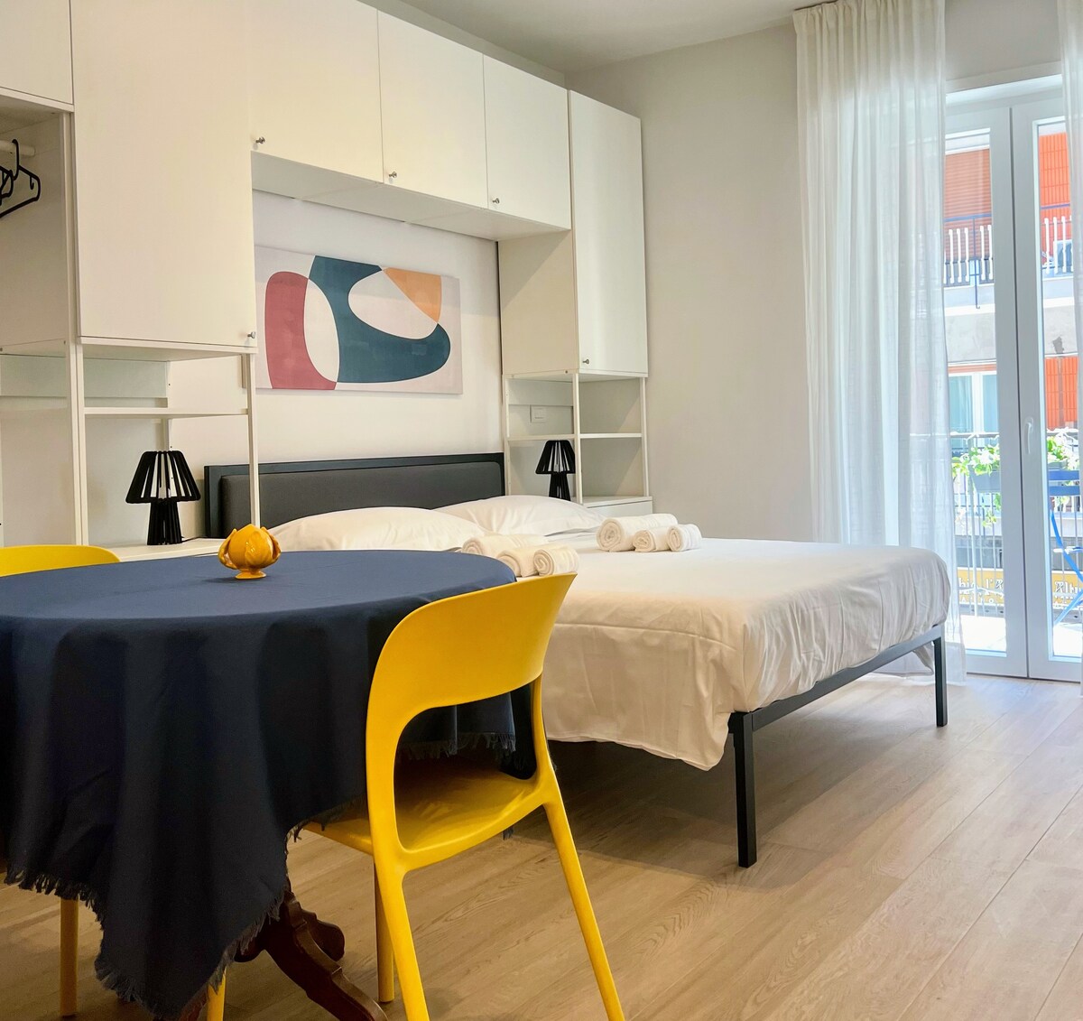 Art View - це стильна квартира площею 115 кв. м у яскравому центрі Барі. Повністю відреставрований майстрами, він поєднує в собі історичний шарм із сучасним комфортом. Розташована в одній з найпрестижніших історичних будівель міста, вона розташована всього в декількох кроках від культового театру Петруцеллі, елегантних торгових вулиць і мальовничої набережної. До чарівного Старого міста легко дістатися, пропонуючи автентичний смак Барі. Завдяки п 'ятизірковим зручностям Art View - це ідеальний відпочинок для вишуканого та незабутнього перебування.