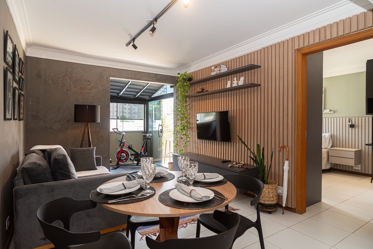 Вишукано оформлений і обладнаний лофт, 2,5 км від Пауліста. Розташований в районі Алімасан, де ви знайдете супермаркети, аптеки, бари та ресторани. Кондиціонер. 18 тисяч Btu 's, Smart TV 40, Wi-Fi 250 мега, глобоплей, критий гараж, ліфт і цілодобовий консьєрж. Кухня обладнана електроплитою, мікрохвильова піч, міні-бар, посуд і кухонне приладдя для 4 осіб. Електронна дверна ручка, яка не вимагає ключів для всіх гостей! Праска, фен і туалетний душ у ванній кімнаті!