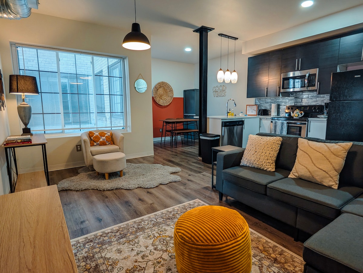 ✅ Робота та відпочинок: швидкий Wi-Fi, стіл для сидіння/підставки та 55-дюймовий телевізор Fire TV для потокової передачі. 🚗 Зручна парковка: безкоштовне місце на території всього в декількох кроках від входу. 🍳 Повністю укомплектована кухня: кавоварка, чай, вершки та все необхідне для приготування їжі. 🧺 Комфорт для тривалого перебування: пральна машина/сушильна машина та засоби преміум-класу для ванни. 🔑 Легке прибуття: самостійне прибуття без зайвих клопотів за допомогою унікального коду доступу.