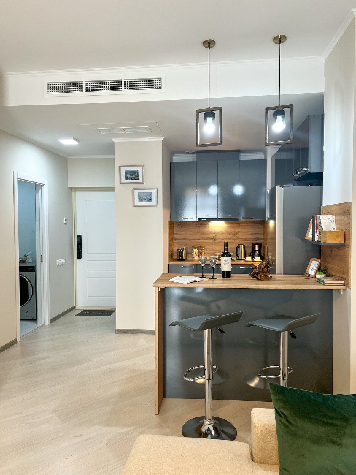 Додайте моє оголошення до списку обраного, натиснувши ♥ у верхньому правому куті: Самостійне прибуття ◦ 24/7 ◦ Нова будівля з рецепцією преміумкласу ◦ 48 кв. м ◦ 3/9 поверх ◦ Ліфт ◦ Балкон із вуличними меблями ◦ Центральна система опалення/охолодження ☆ Дизайнерський ремонт і меблі Зручності ◦ преміум-класу ◦ Смарт-телевізор ◦ Швидкий WI-FI ◦ Повністю обладнана кухня з набором посуду ◦ Диван+ліжко ◦ Басейн/сауна в будівлі (платні). ◦ Свіжа постільна білизна та рушники Туалетні приналежності в розкішному готелі для ◦ початківців