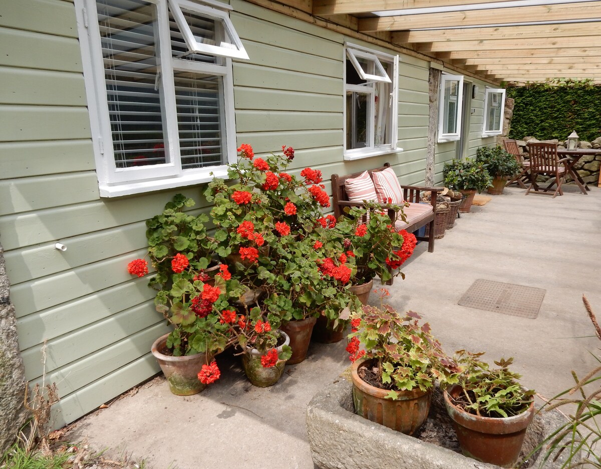 Затишна прибудова до саду, що складається з двомісної спальні, відкритої вітальні/їдальні/кухні та душової кімнати. У вітальні є односпальний диван-ліжко, придатне для дорослої людини або старшої дитини. Вона має власні вхідні двері з виходом прямо на патіо та сад. Зручно розташована для поїздок до Дартмура, моря, Ексетера та Торбея. Можливість покататися на велосипеді, прогулятися або просто відпочити. Паби та магазини розташовані неподалік. Добре поводяться собаки за домовленістю – див. умови нижче.