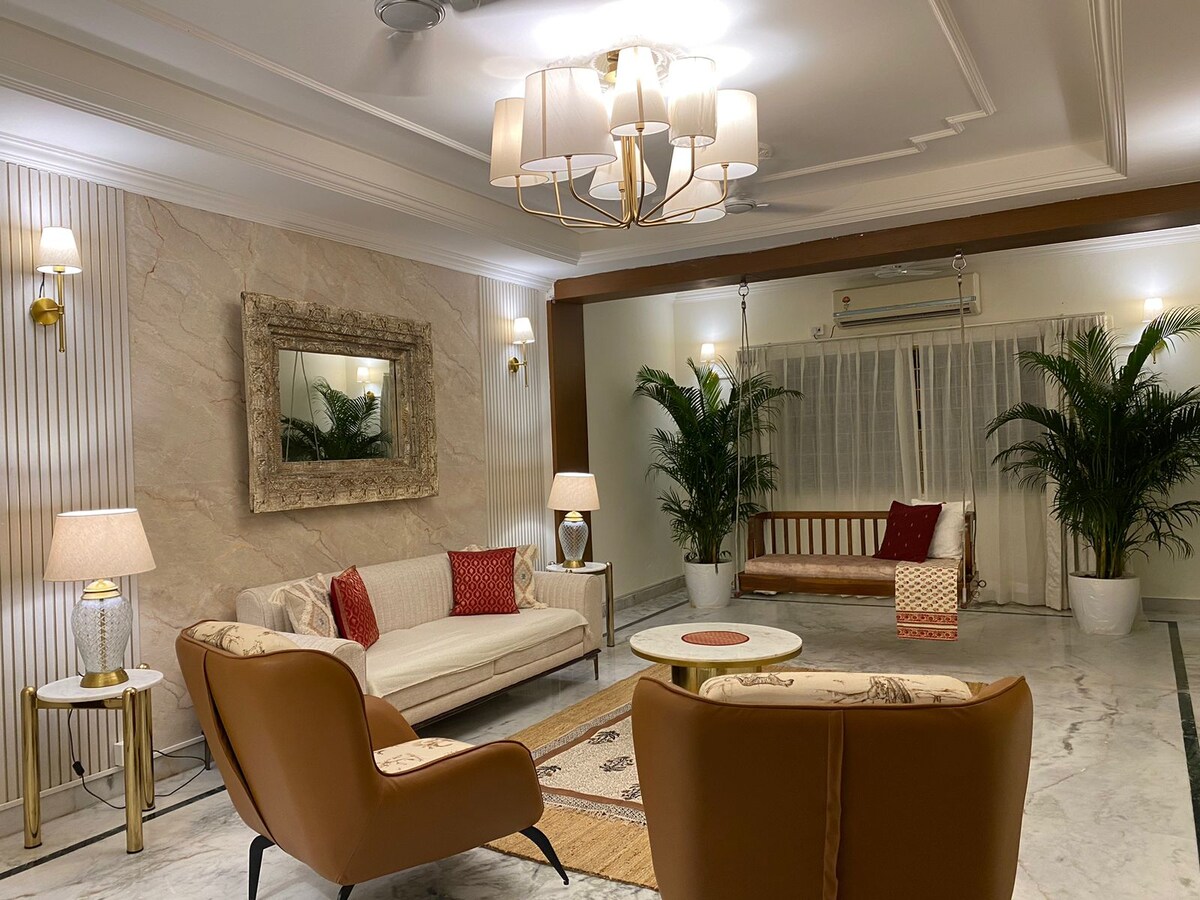 Це в Гуррамгуді. Відпочиньте всією сім 'єю в цьому спокійному помешканні. Ласкаво просимо до нашого розкішного будинку на другому поверсі (без ліфта ), розташованого в спокійному житловому районі з 2 ліжками розміру King size. Цей елегантний відпочинок пропонує ідеальне поєднання комфорту та зручності для вашого перебування з цілодобовим резервним живленням. Ідеальне місце для сімейного відпочинку Слід зазначити, що у нас немає ліфта, а куріння та вечірки заборонені.