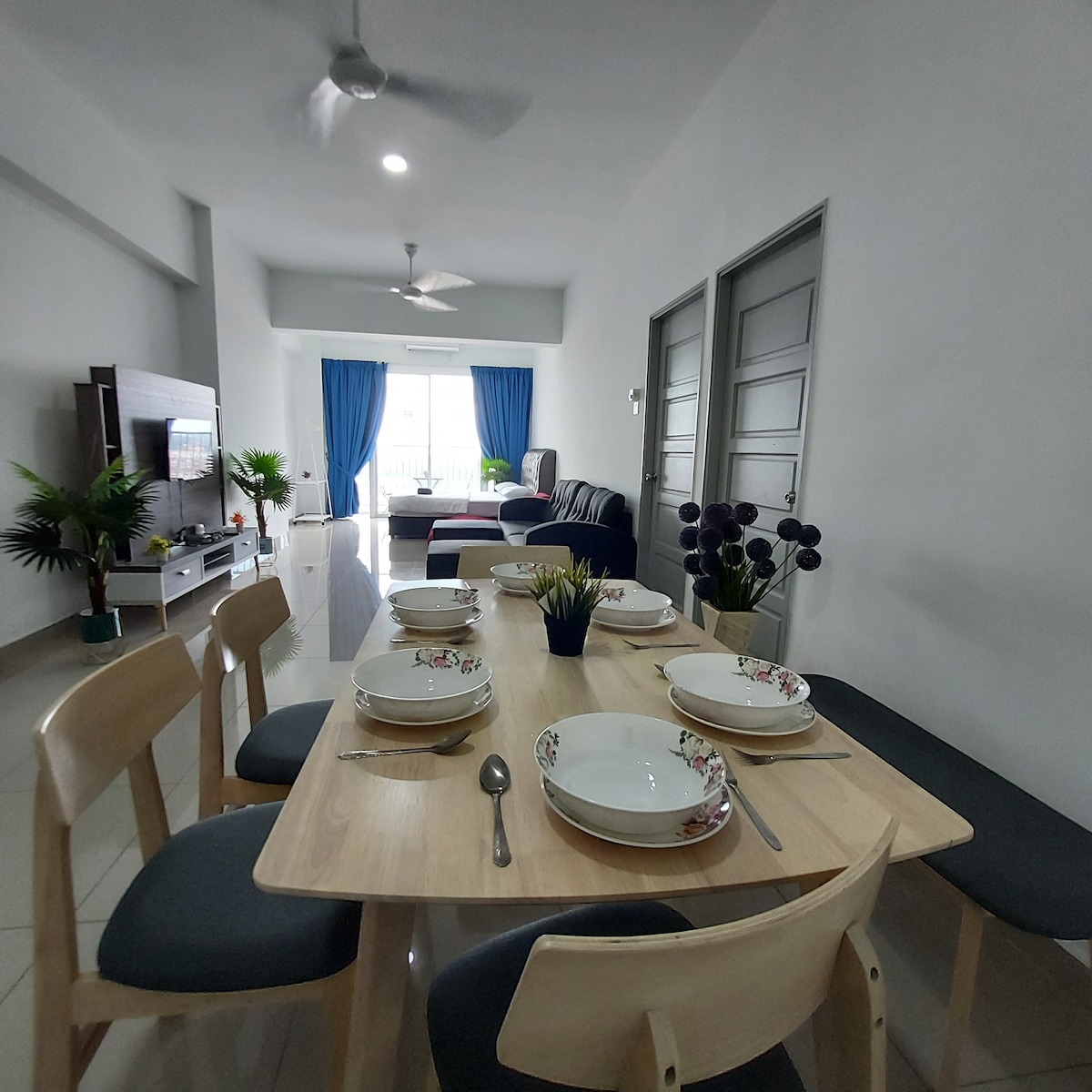 *ПІЗНІЙ ВИЇЗД ДО 15:00.* 1 хвилина їзди до Aeon, Mcdonalds. 15 хвилин їзди до Marina Island/Lumut. Високий поверх з гарним видом. Наше помешкання: - 3 спальні з ліжками king-size + додатковим матрацом. - 2 ванні кімнати - Обідня зона. - 2 смарт-телевізори + телевізор - Диспенсер для води - Столові прибори - Холодильник. - Пральна машина. - Високий поверх. - БЕЗКОШТОВНИЙ Wi-Fi. - БЕЗКОШТОВНА 2 АВТОСТОЯНКА. Об 'єкти: - Басейн. - Ігровий майданчик - Тренажерний зал – Сад на даху. **Ми надішлемо запит на отримання страхового депозиту в розмірі 200 RM до прибуття.