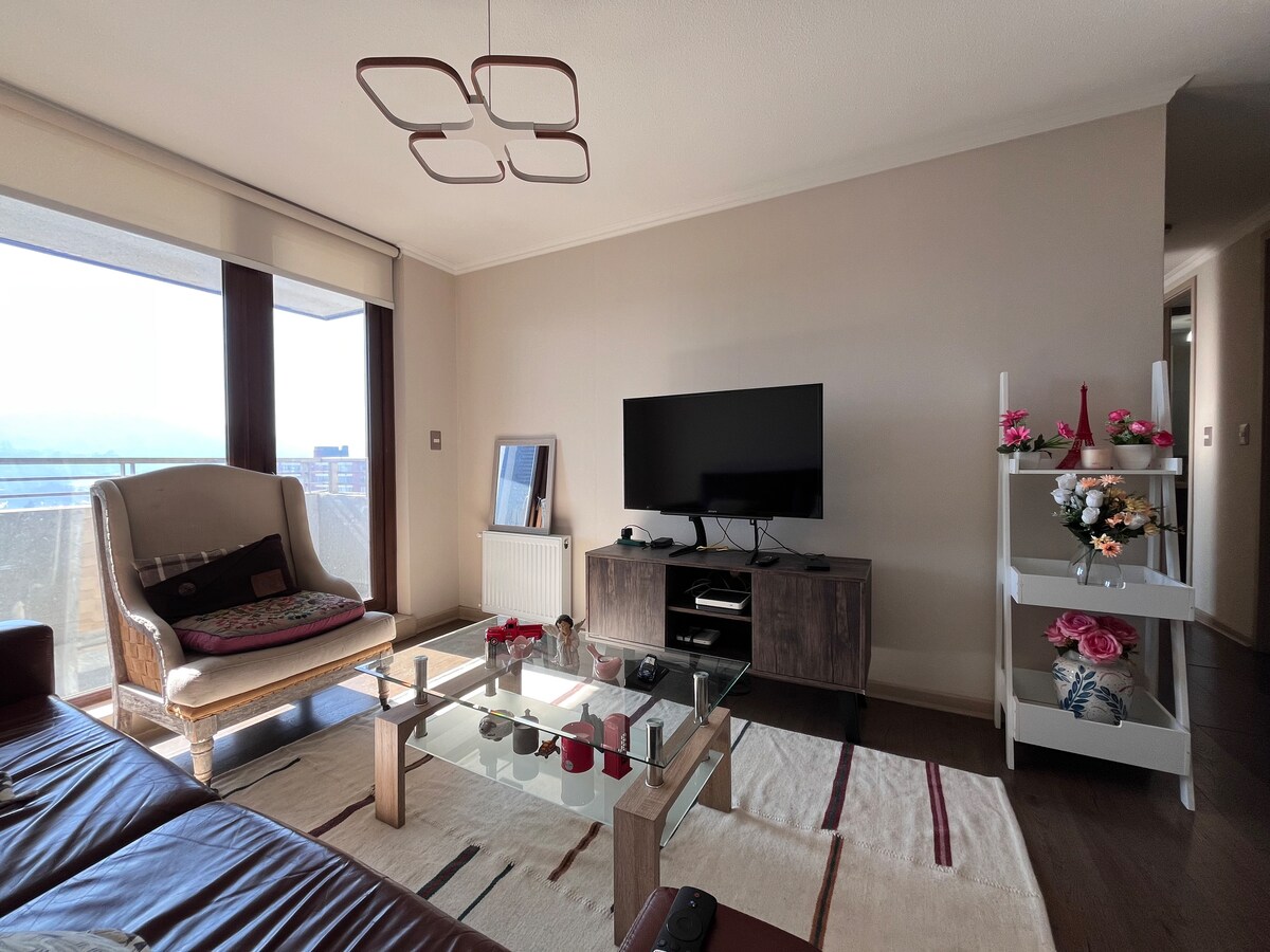 Насолодіться комфортним і сучасним перебуванням у цій світлій, повністю обладнаній квартирі з прекрасним, безперешкодним видом на місто. Чудово підходить як для відпочинку, так і для ділових поїздок. Розташоване в декількох кроках від центру міста Темуко, воно має високошвидкісний Wi-Fi (600 Мб), смарт-телевізор із Netflix і HBO Max, а також зручне ліжко преміум-класу, яке гарантує спокійний сон. У будівлі є пральня, цілодобовий консьєрж і безкоштовний приватний паркінг.