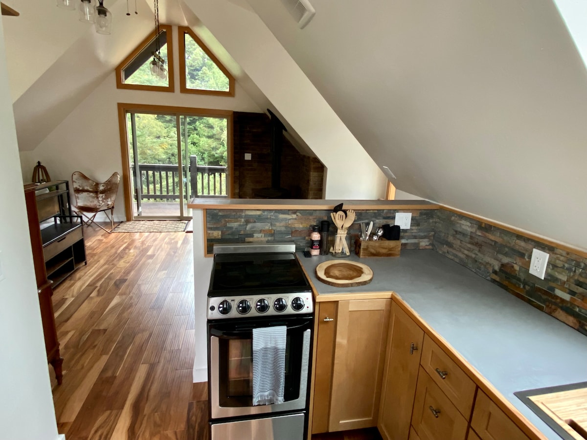 Розслабтеся та підзарядьтеся в цьому спокійному, стильному помешканні. Прокиньтеся, дивлячись на величезні вікна на дерева, луки та океан на відстані. Солодка задня тераса з видом на невеликий луг і ліс. Затишний камін для розмов глибоко ввечері. Кімната, щоб розгорнути килимки для йоги або бути креативним. Спеціальні барні стільці для їжі та пиття. Лічильники ручної роботи, невелика кухня та стильна ванна кімната з шиферною плиткою, спеціальна раковина та нова настінна плитка. Прогулянка дикою природою по провулку .