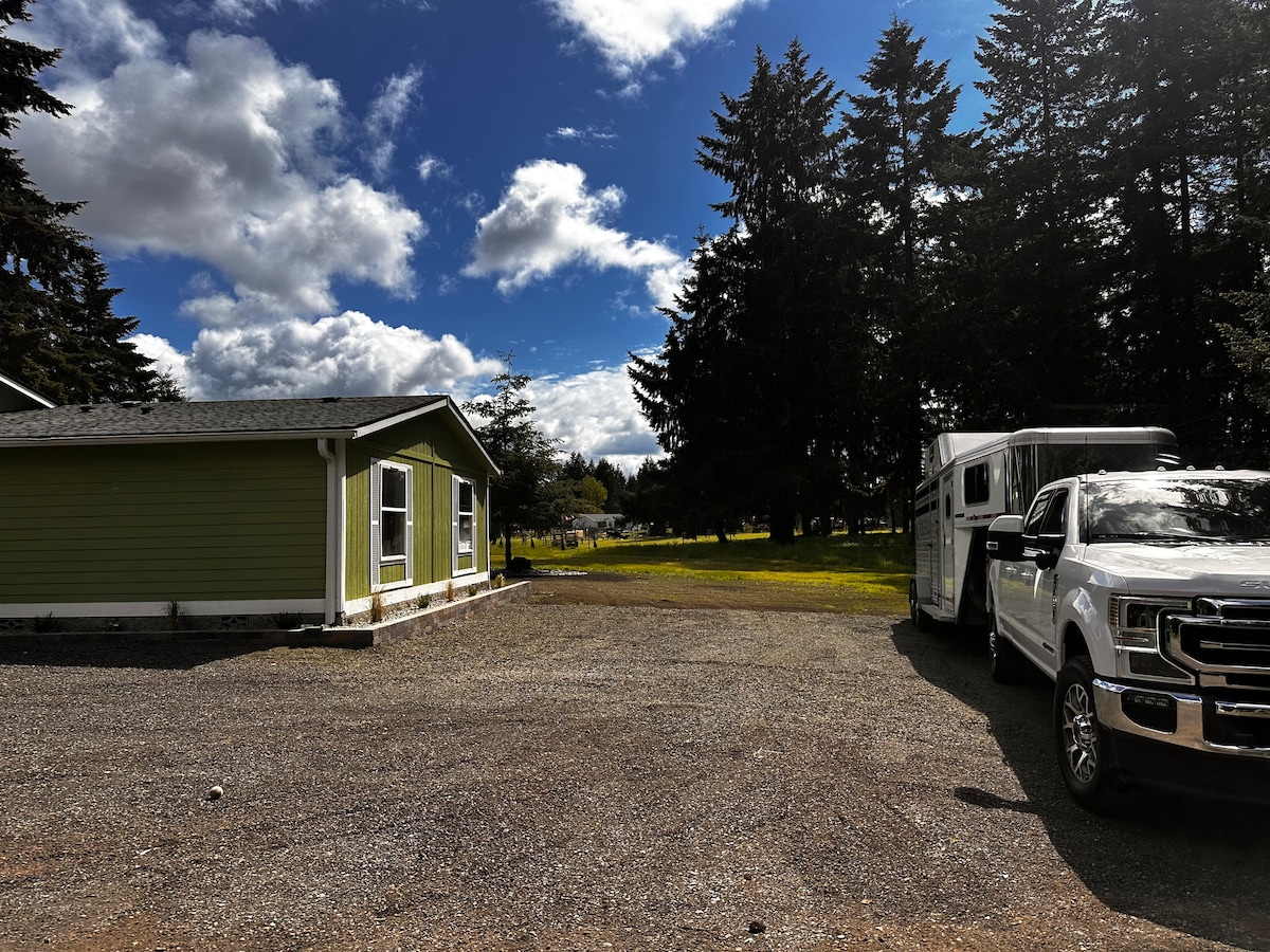 Цей заміський будинок розташований всього в 13 милях від Олімпії, штат Вашингтон, поєднує в собі мистецьке оформлення та сільський шарм навколишнього лісу. Всередині є унікальні дерев 'яні сходи до ліжка в лофті queen-size або спальня преміум-класу внизу. У помешканні є повністю обладнана кухня з холодильником для вина. У ванній кімнаті є унікальний дощовий душ зі СВІТЛОДІОДНИМ освітленням, і не забудьте зануритися в ванну на відкритому повітрі. Це справжній райський куточок лише для вас.