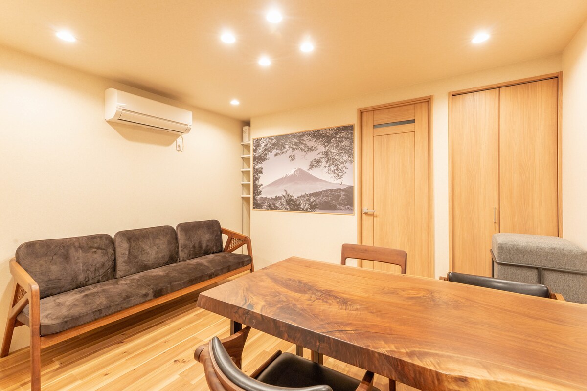 Цей приватний готель, відремонтований у серпні 2025 року, поєднує в собі японську елегантність із сучасними зручностями. Просторі апартаменти площею 144 кв. м мають відкриту вітальню та їдальню, кімнату в західному стилі з двоспальним ліжком та кімнату в японському стилі з ароматом татамі, щоб ви могли відпочити з родиною та друзями.Ванна кімната з чорною плиткою – це розкішне місце, де можна насолодитися ванною з видом на двір.В окремій від ванної кімнати душовій кабінці є два туалети, що робить її зручною для кількох людей.Шпалери виготовлені з паперу Тоса васі з вугіллям Бінчотан, а зовнішні отвори включають делікатні розсувні двері, що огортають простір м’яким світлом і тінями.У токономі виставлена каліграфічна робота художника Ватару Хатано під назвою «Річка», і кожна деталь наповнена відчуттям краси.Ви можете розслабити свій розум і тіло в сауні, поговорити біля каміну взимку та насолодитися караоке.Також є приватна парковка, яка пропонує зручність і комфорт.Крім того, ми підготували для вас набір чаю маття від чайного магазину Ichibodo, який має 300-річну історію в Кіото, щоб ви могли відчути справжню японську гостинність і культуру.Це 6 хвилин пішки від станції Міякодзіма та 6 хвилин до станції Осака, що робить його ідеальною базою для огляду визначних пам’яток.