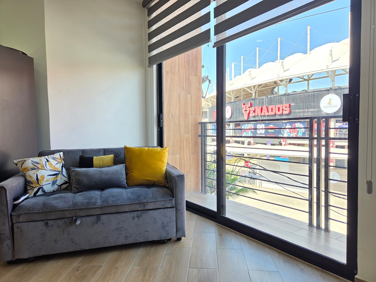 ✨ Vive Mazatlán con comodidad y tranquilidad ✨ Disfruta un departamento equipado y con alberca, una excelente ubicación frente al Estadio de Béisbol. Ideal para descansar después de un día de playa, eventos o recorridos por la ciudad. Incluye: 🏊 Alberca 📶 Wi-Fi y cable 🍳 Cocina totalmente equipada 🚗 Estacionamiento privado gratuito 🛗 Elevador 📍 Ubicación privilegiada: Frente al Estadio Teodoro Mariscal y a solo minutos del Gran Acuario, malecón, 🌊 playas y restaurantes.