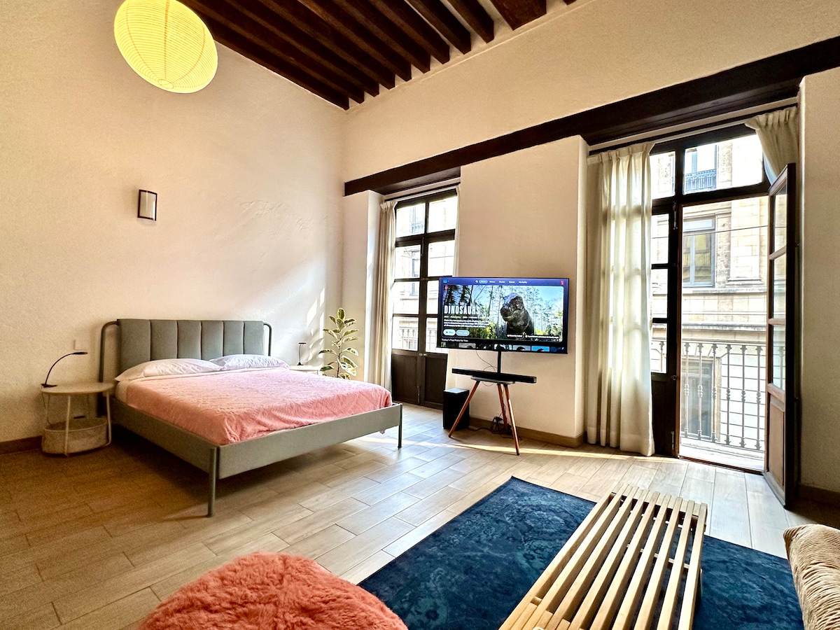 Лофт із ліжком розміру King size, балконом та краєвидом на Парк Мексики
