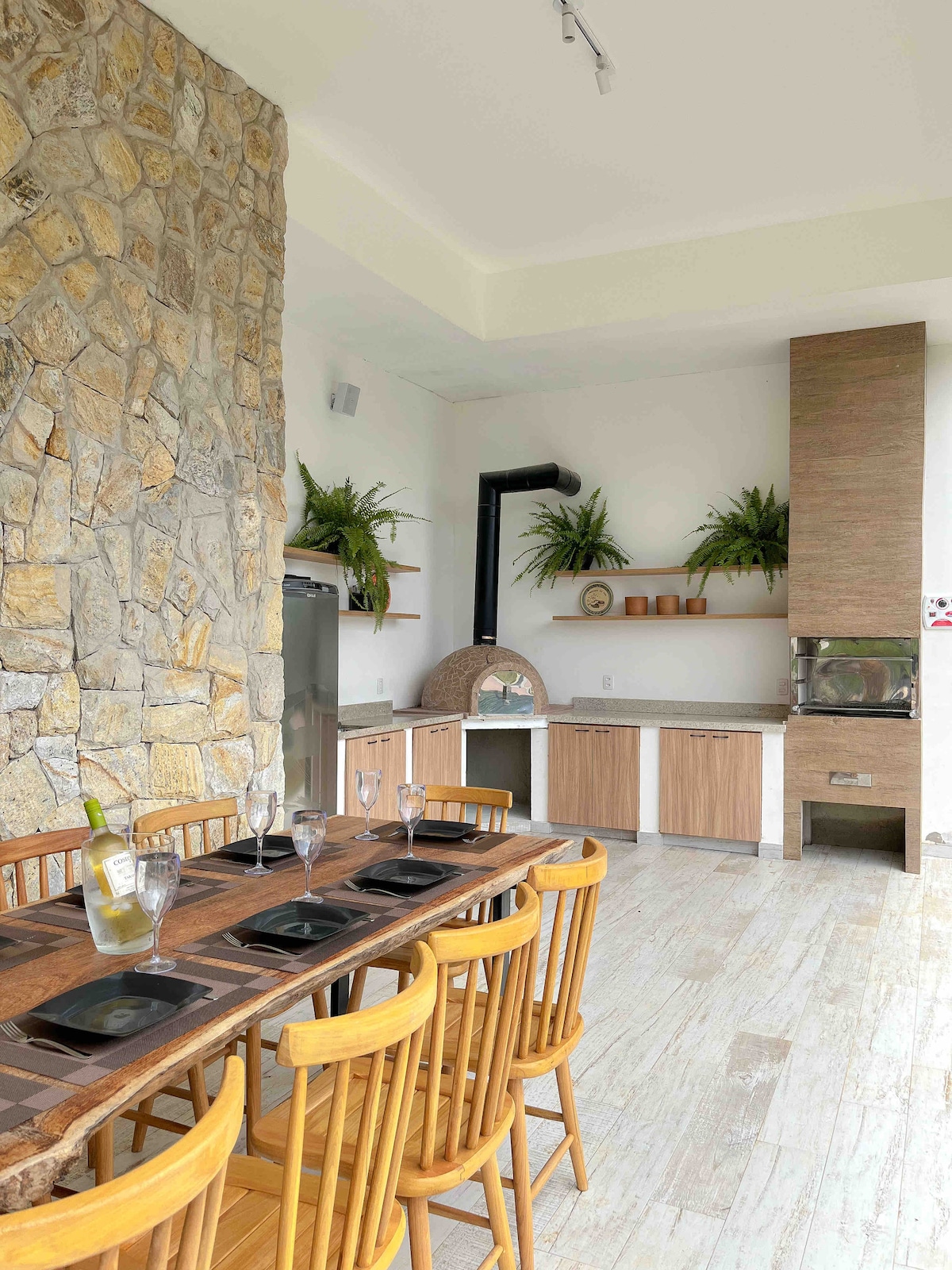 Welcome to #CurtaTere01! Cozy 3-bedroom house (2 suites + 1 bedroom with nearby bath), all with ceiling fans and heaters, plus an extra bathroom. Living room integrated with a full kitchen, 450 MB internet, deck by the river with natural pools and waterfalls, private pool, BBQ grill, pizza oven, veranda, garden, volleyball court, outdoor shower, pet-friendly area, and covered parking for 1 car. Private land of 1100 m². We look forward to welcoming you!