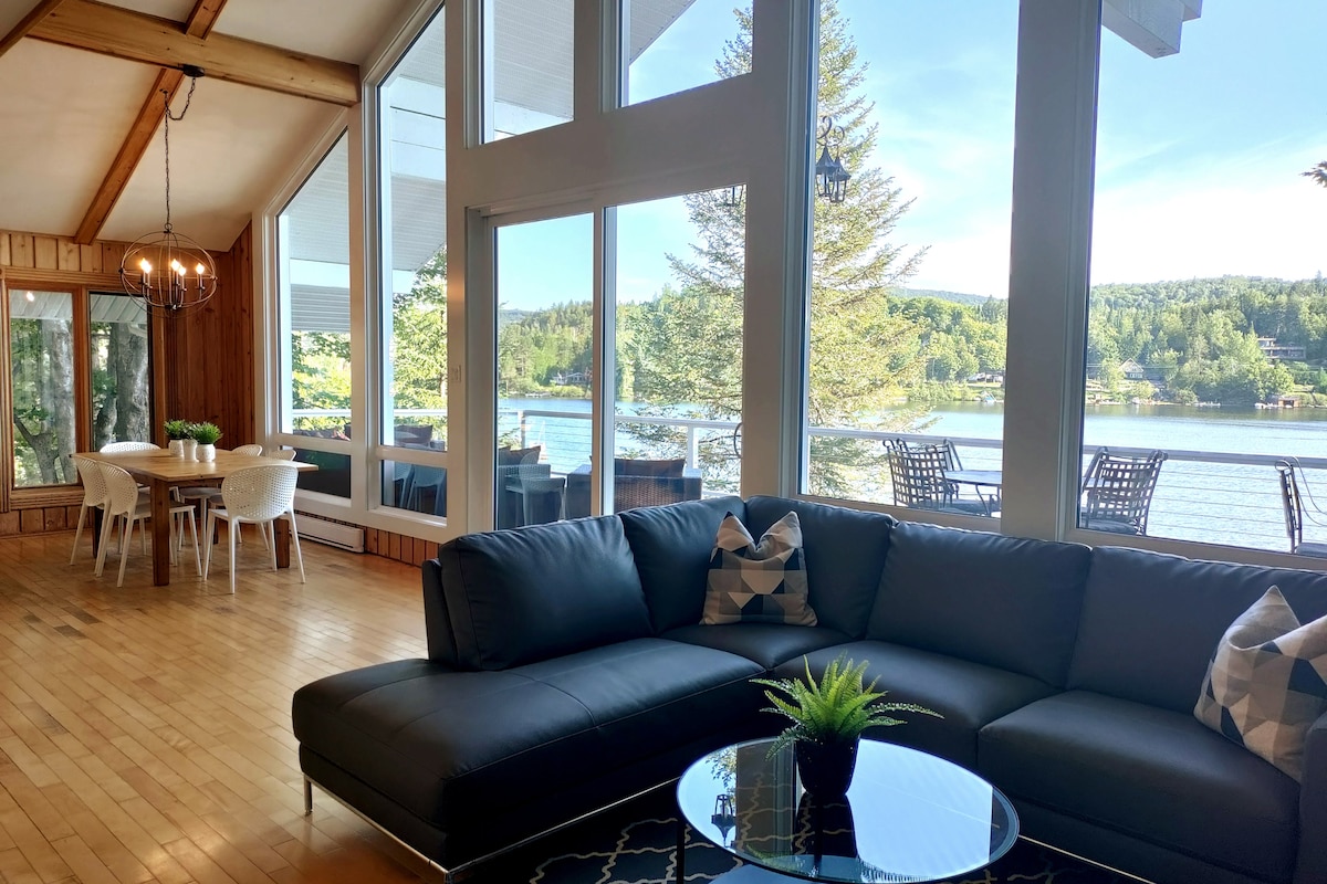 CITQ #299883 Елегантне заміське життя Les Laurentides 45 хвилин від Монреаля. Столітнє шале з усіма сучасними зручностями (необмежений високошвидкісний Wi-Fi (Fibe 1000), Nespresso (Vertuo), кондиціонер, дров 'яний камін тощо). Панорамний вид на озеро Гвіндон і доступ до хвилини ходьби (велосипедний човен і каяк включені). Спокій на озері чекає на вас у 5 хвилинах від Сен-Совер, гірськолижних схилів і водних гірок.