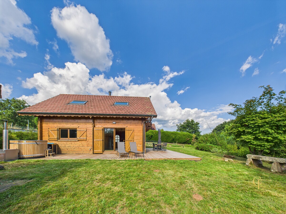 Дерев 'яний будинок з великою терасою в центрі чарівного маленького селища, весь комфорт. Ідеально підходить для двох осіб, є місце для третього мандрівника. Розташований на висотах села, ви можете побачити Альпи з тераси, коли дозволяє погода. Любителі пішохідних прогулянок, ви можете досліджувати ліси Вогезів з будинку, зокрема місце проведення площі Белл-Філл, прославленого велосипедистом Тур де Франс.