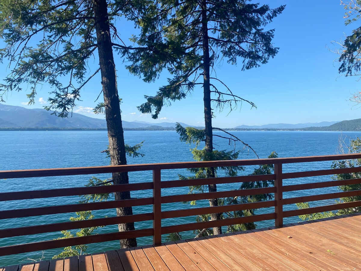 Cozy A-Frame retreat, pinned to the top of a rock with spellbinding views of Lake Pend Oreille and the Sandpoint area mountains. Just 4 miles from downtown and 5-minute drive to the Schweitzer shuttle. This intimate studio with a loft is a haven for couples. Unwind in a queen-sized bed, prepare meals in the granite kitchenette, and indulge in a custom shower with a heated toilet seat and bidet. Enjoy other modern amenities like high-speed WiFi and AC. End of the road privacy.