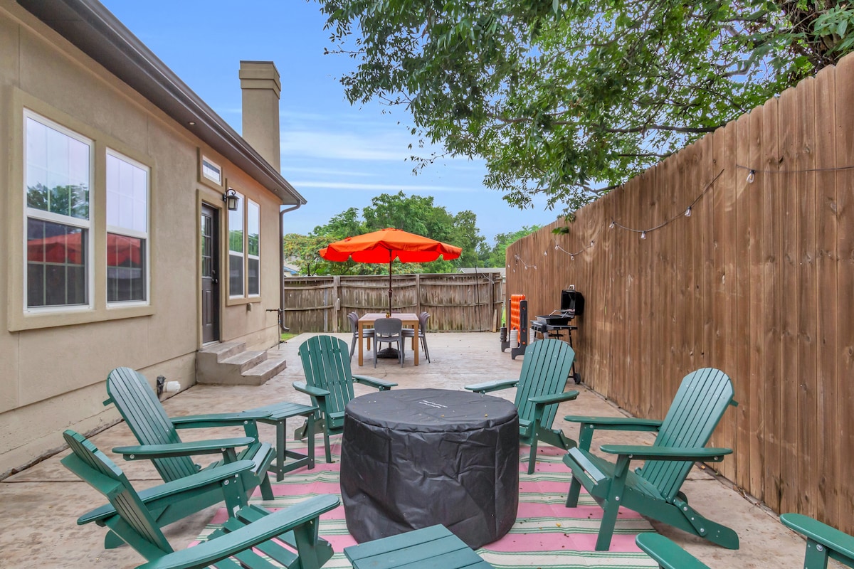 Розслабтеся та підзарядьтеся в цьому помешканні в центрі Дентона. У декількох хвилинах ходьби від усіх магазинів і ресторанів, які може запропонувати історична площа в центрі міста, а також від Університету Північного Техасу та Техаського жіночого університету, наше помешкання яскраве та спокійне, з двома окремими спальнями, повноцінною ванною кімнатою з ванною та душем, ігровою кімнатою, повноцінною кухнею, пральнею, заднім двором з вогнищем та квинтсенським переднім ганчком, де можна просто посидіти і подивитися на світ.