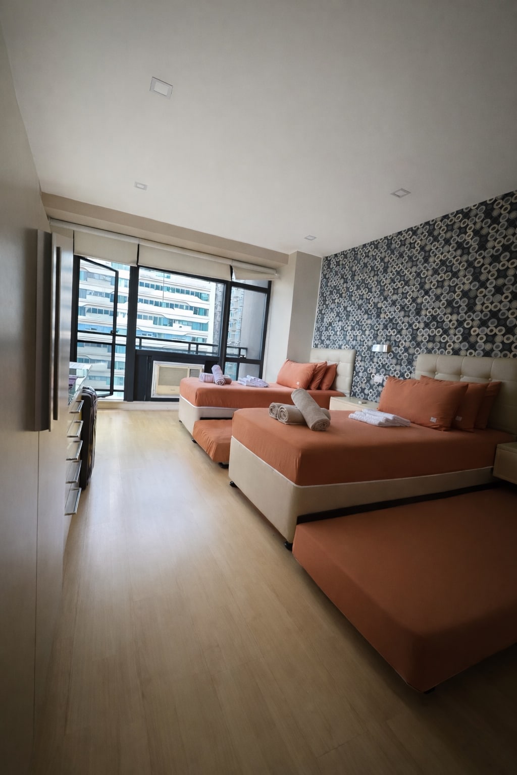 One Bedroom unit at the Milano Residences Two Air conditioners / Smoker's balcony / and a complete kitchen. This one-bedroom is super cozy and a great place to entertain at the same time. So comfortable, it really is home! The downstairs shared pool and sauna is available Tuesday to Sunday, 7AM to 7PM. The pool will be closed during cleaning day (Monday) Parking is at Century City Mall next door. Super convenient and 24 hours.