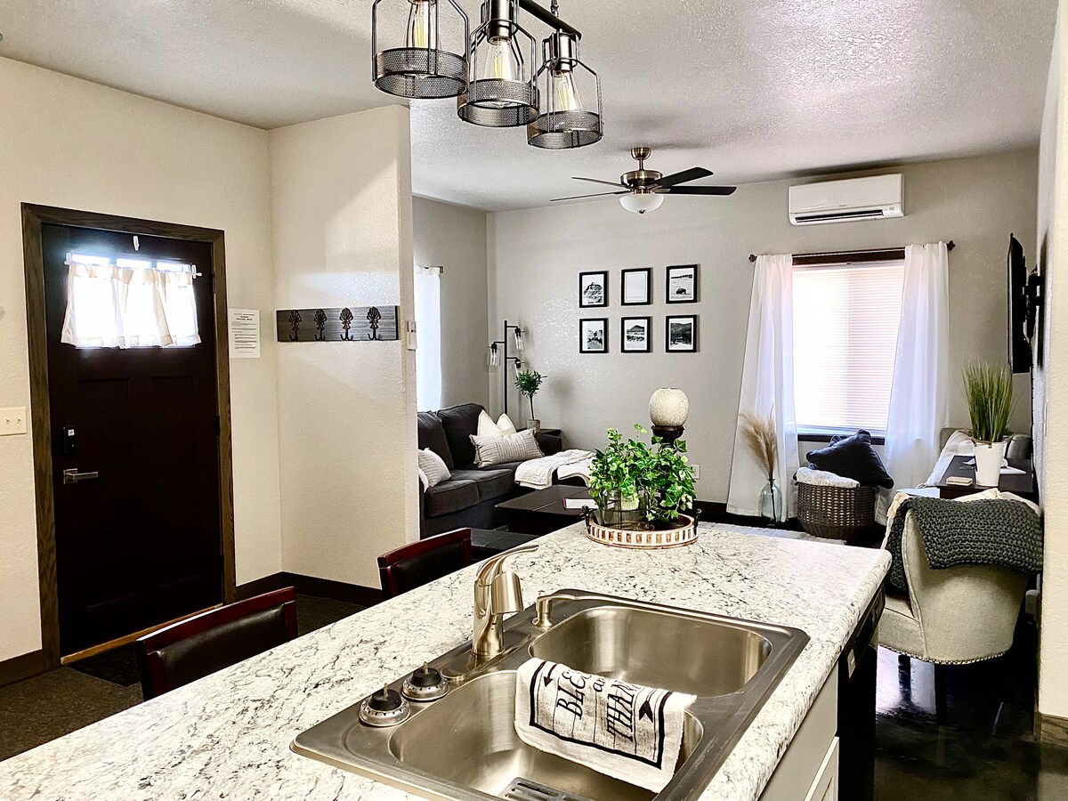 Шукаєте розкішне, унікальне помешкання? Цей будинок розташований з видом на Рапід-Сіті з неймовірним видом на горизонт. Кожен вечір ідеальний, як і сяючі міські вогні. Цей унікальний будинок - веселе поєднання еклектичного та модного. Спочатку він був побудований як місцевий будівельник «Coup de Grande», але в кінцевому підсумку закінчив лише завершення гостьового будинку. Ви знайдете тут висококласні оздоблення в поєднанні з еклектичними елементами. Ми обіцяємо, що це буде одне з найпам’ятніших місць, де ви коли-небудь зупинялися!