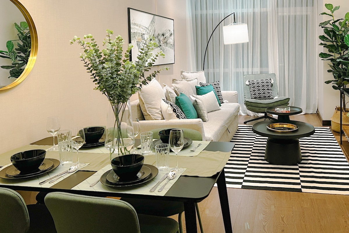 Ласкаво просимо додому в нашому лофті в BGC. Сподіваюся, вам тут сподобається. ☺️ AVANT AT THE FORT знаходиться на вулиці на вулиці 3-й авеню, на одній з найжвавіших місць у Боніфаціо-Глобал-Сіті. Забудьте про турботи в цьому просторому й спокійному помешканні. Наша професійна команда господарів прийняла понад 12 000 гостей у 20 помешканнях з 2016 року. З цього кутового помешкання площею 54 кв. м відкривається захоплюючий краєвид на De Jesus Oval, густу зелень міні-парку та приватний гольф-клуб Manila.