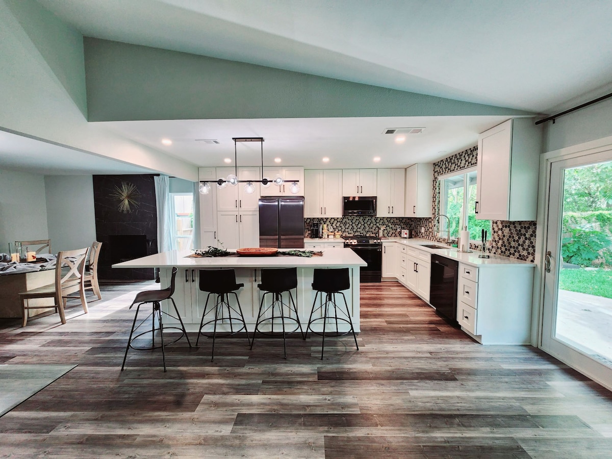 Ласкаво просимо до нашого помешкання з 4 спальнями неподалік від Домену в прекрасному Остіні, штат Техас! Цей сучасний і привабливий будинок із екстравагантною кухнею ідеально підходить для сімей або груп, які шукають комфортне перебування в центрі міста. Задній двір ідеально підходить як для відпочинку, так і для ігор! Вийдіть на вулицю, щоб знайти майданчик для волейболу з травою та місцями для відпочинку на відкритому повітрі, або зайдіть всередину, щоб пограти в пінг-понг і басейн. Незалежно від того, чи ви любите волейбол, чи просто хочете відпочити, наш задній двір - ідеальне місце!
