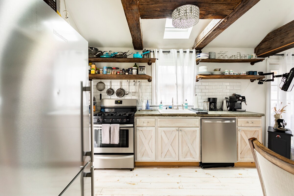Насолоджуйтеся всім, що може запропонувати Гудзонська долина з цього спокійного, стильного лофт далеко від дому. Простір із оригінальними творами мистецтва та еклектичним поєднанням MCM та антикваріату дозволяють насолоджуватися красою як всередині, так і зовні. Зранку вас зустрічають краєвиди на гонки, а ввечері можна насолоджуватися яскравими заходами сонця з затишного вогнища. Спостерігайте за пейзажами, що плавають над головою, завдяки парашутному ранчо вниз по дорозі, гуляйте по сусідньому заповіднику Мохонк або насолоджуйтеся залізничною стежкою всього в п 'яти хвилинах ходьби від ваших дверей.