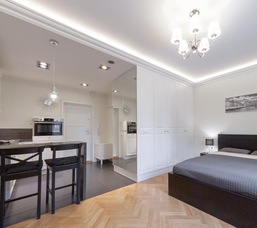 Атмосферна квартира в одному з найкрасивіших будинків в стилі модерн у центрі Варшави. Балкон з видом на одну з наймодніших вулиць Варшави. (БАЛКОН НЕ ДОСТУПНИЙ ВЛІТНЬОГО ПЕРІОДУ — плануються ремонтні роботи) Квартира площею 37 квадратних метрів і висотою 4 м. Вона складається з великої кімнати, великого коридору з міні-кухнею та ванної кімнати. Чудове розташування, в декількох хвилинах ходьби від основних пам 'яток столиці.
