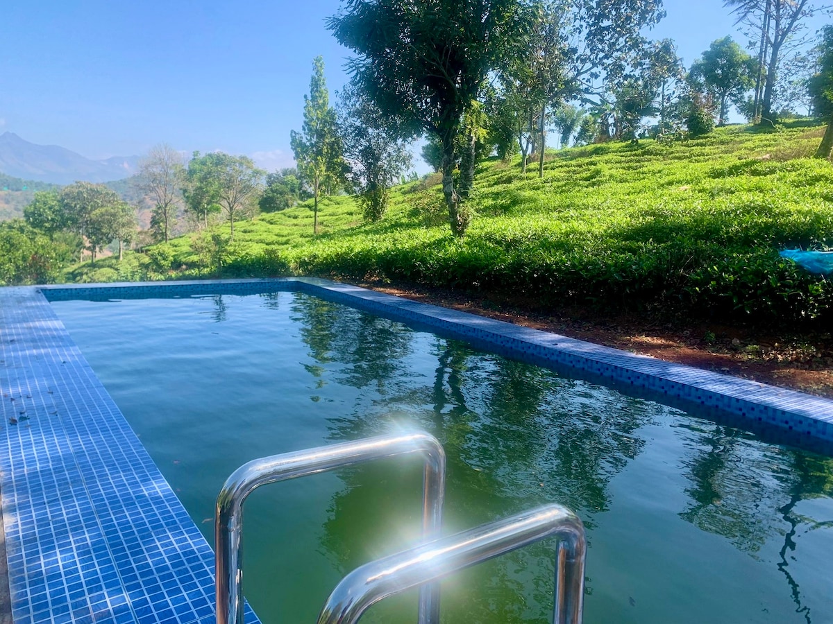 Природний кам’яний басейн і ферма з видом на гори в Кералі