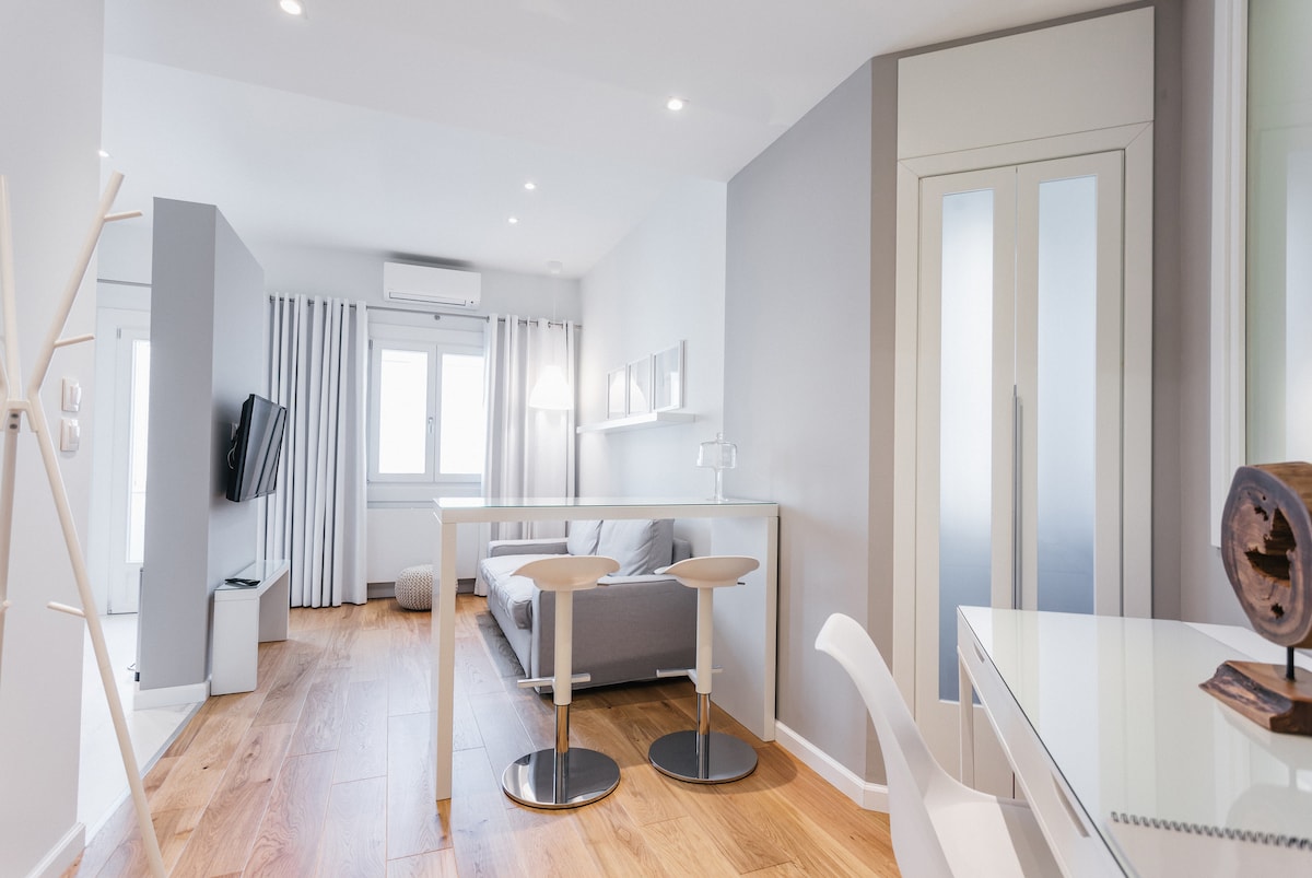 - Примірне розташування на бічній вулиці площі Арістотель - За кілька кроків від набережної - Легка ходьба до всіх об 'єктів/майданчиків - Сучасний чистий дизайн з достатнім природним освітленням - Легкий доступ без ключа - Перетворювач кондиціонера для опалення/холоду - Високоякісний матрац та подушки - Розкішна ванна кімната Дизайн мокрого приміщення - Професійно прибрана для вашого перебування - Ідеально підходить для пари, самотнього мандрівника, керівників, друзів та родини - пропонує всі зручності, необхідні для комфортного, розслабленого перебування в цьому оживленому місті!