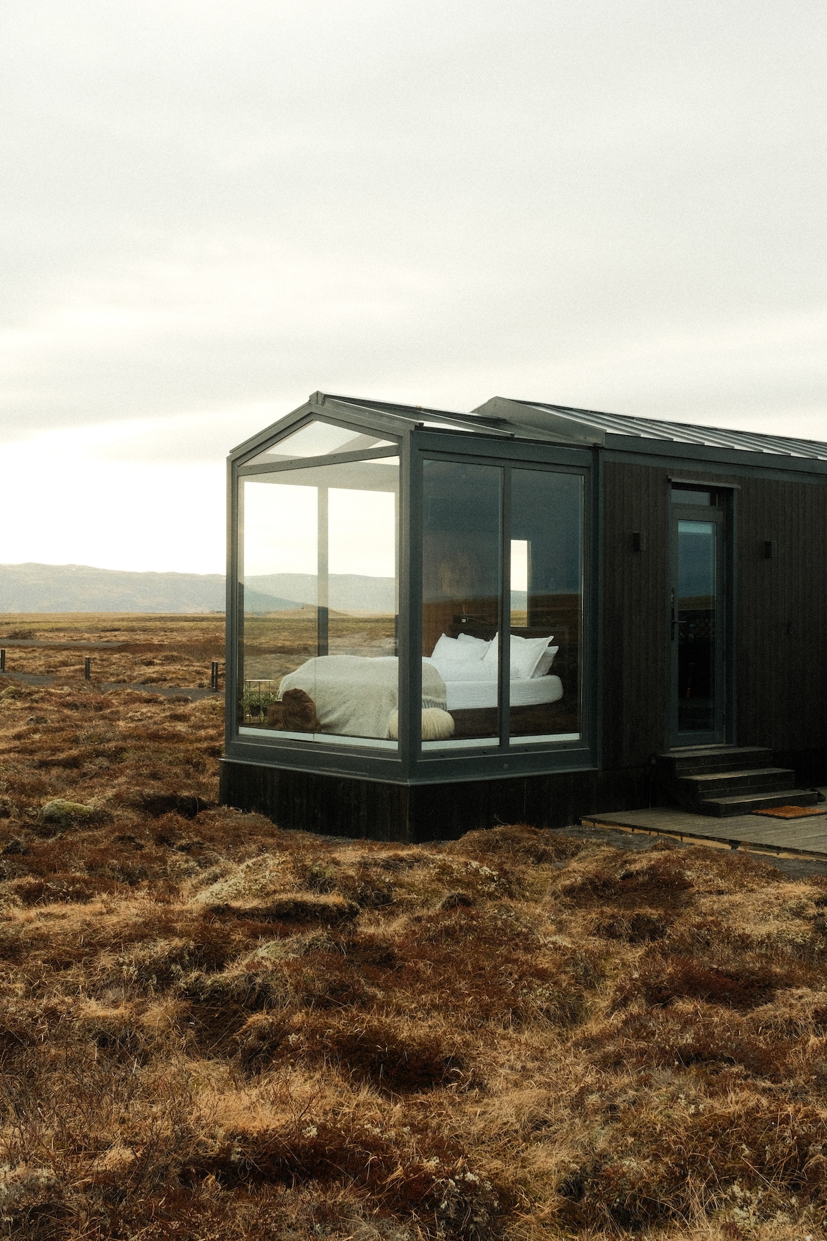 Welcome to your one-of-a-kind Airbnb experience in Iceland, this small cabin boasts a unique mirror glass shell that reflects the stunning Icelandic landscape, allowing you to truly immerse yourself in the beauty of this magical land. As you step inside, you'll be greeted by a cozy and comfortable interior, complete with a double bed that offers a panoramic view through the mirror window. Perfect for solo travelers or couples seeking a unique and inspiring getaway. Licence number HG-00017975.