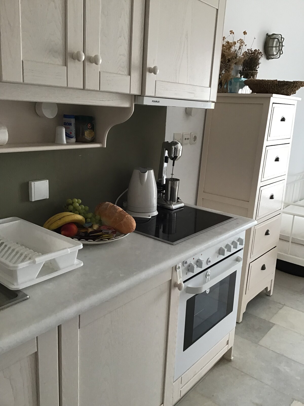Студія (25 м) складається з однокімнатної кухні-кухні з вбудованим двоспальним ліжком та диваном, який може забезпечити 2 окремі односпальні ліжка. У ньому є ванна кімната з душем та велика тераса з панорамним видом на море та схід сонця. Студія оснащена повністю обладнаною кухнею з тостером, чайником, кавоваркою для приготування крапель кави та еспресо, мультифудкомером, ручним міксером та феном. БЕЗКОШТОВНИЙ БЕЗДРОТОВНИЙ ІНТЕРНЕТ та кондиционер. В апартаментах є посудомийна та пральна машина.