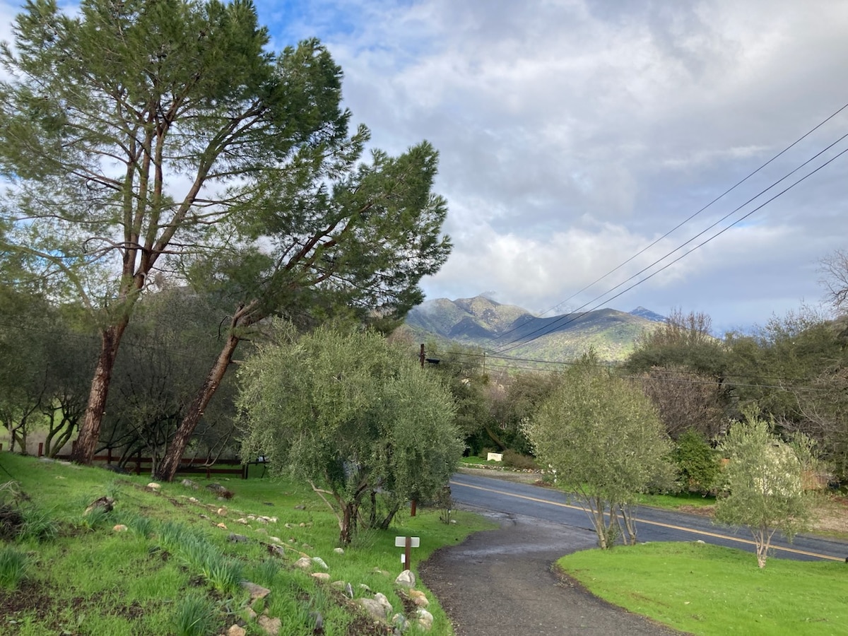 Це красиве помешкання з яскравою спальнею розміру Queen size, 1 великою ванною кімнатою, прекрасною кухнею, просторою вітальнею зі смарт-телевізором та чудовим Wi-Fi. Розташоване на схилі пагорба над річкою з надзвичайно розслаблюючими краєвидами. 5 миль від входу в парк Секвойя. Відпочиньте в приватному патіо з видом на каньйон, слухаючи рев річки. Дім далеко від дому.