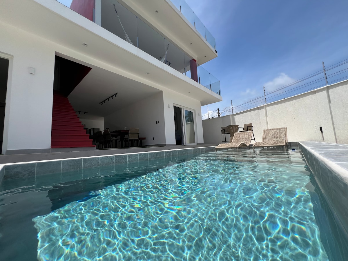 Орендуйте красивий будинок БІЛЯ МОРЯ в Барра-ду-Куньяу, розташований всього в 80 км від Натала-РН і в 8 км від пляжу Піпа. Чудове місце для кайтсерфінгу та спокійних любителів пляжів, будинок має 3 апартаменти (з кондиціонером) та 2 просторі спальні на першому поверсі, безкоштовний Wi-Fi, вітальня, кухня, велика веранда та балкон, басейн, гриль для барбекю на вулиці. Повністю мебльована
