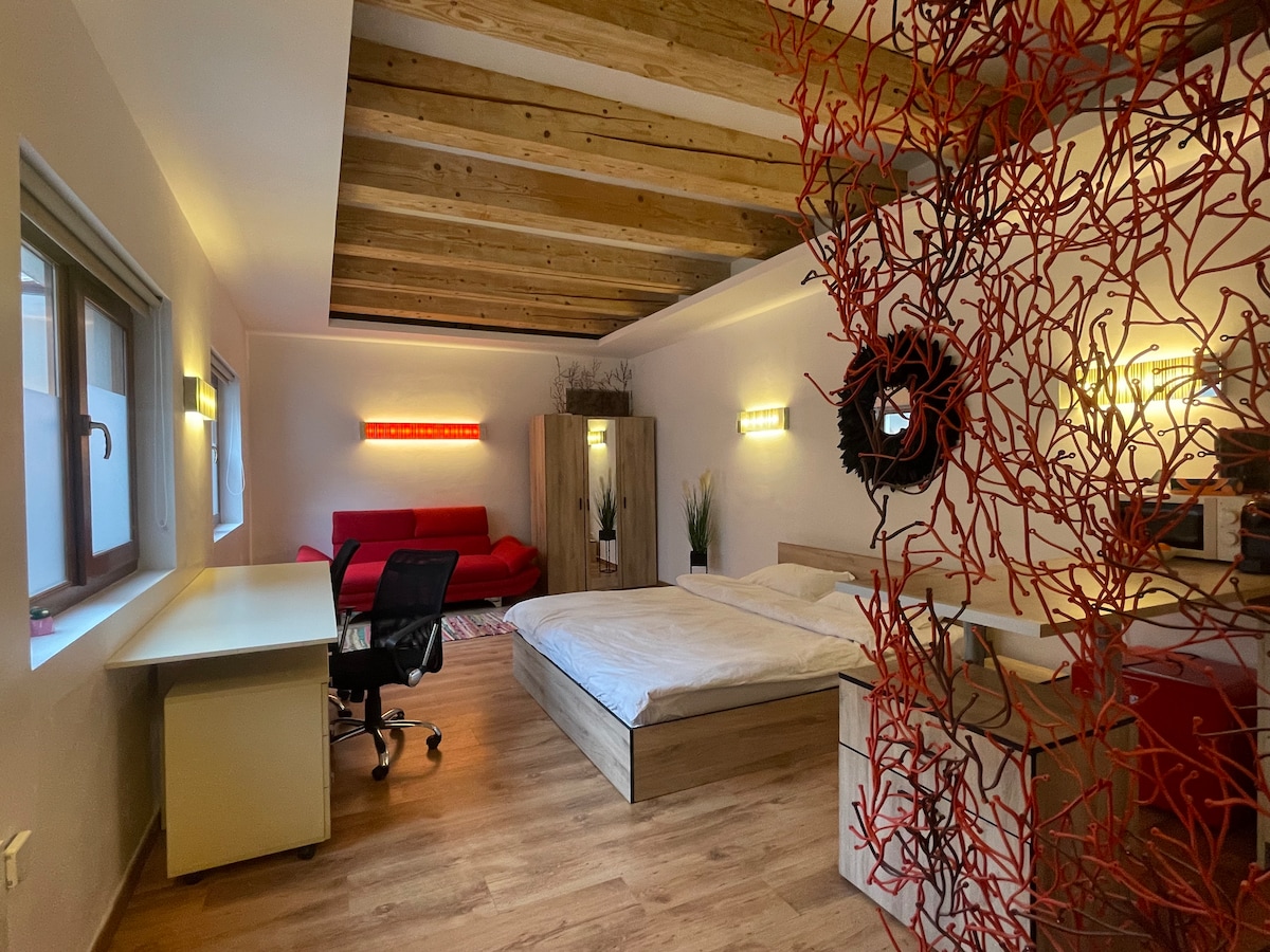 Ідеальна база для вивчення Тімішоари! Відкрийте для себе затишну і сучасну студію в історичному центрі міста Тімішоара. Насолоджуйтеся двоспальним ліжком, повністю обладнаною кухнею, робочим простором і такими зручностями, як кондиціонер і дуже швидкий Wi-Fi. Відкрийте для себе пам 'ятки, ресторани та магазини поблизу. Самостійне прибуття в будь-який час після 14:00. Зверніть увагу, що обмежена парковка, круті сходи та невелика ванна кімната. Подорожуєте з друзями? У тій самій будівлі доступно кілька квартир. Забронюйте зараз, щоб отримати незабутнє перебування!