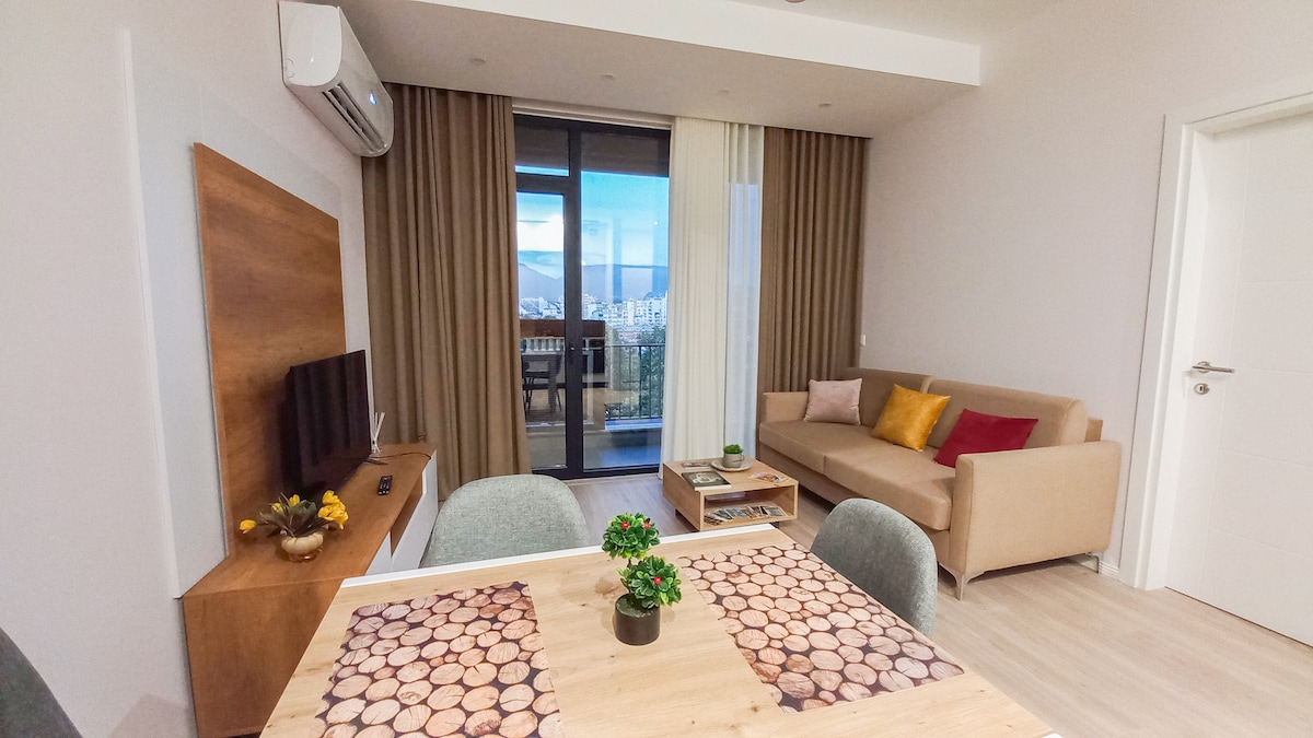 Квартира була концептуальна завдяки перевагу елегантності, простоті та максимальному комфорту. Насолоджуйтеся проведенням часу з сім 'єю та друзями, дивлячись на краєвид на великі вікна, які наповнюють кімнати достатньою кількістю природного освітлення. Його зручне розташування додає приємних вражень, всього в 10 хвилинах ходьби від центральної площі міста в одному з нових сучасних районів Тирани.