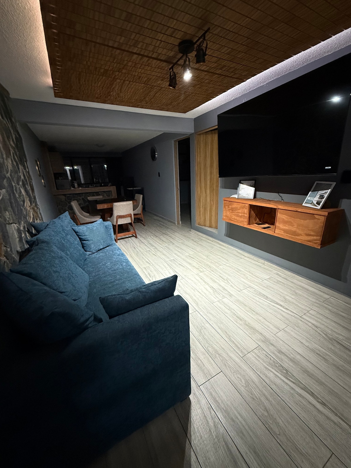Disfruta de la comodidad y tranquilidad que ofrece nuestro departamento de planta alta, diseñado para que te sientas como en casa desde el primer momento. Cuenta con 2 habitaciones amplias, perfectas para descansar, 2 baños completos que brindan total comodidad para familias o grupos, una acogedora sala de TV ideal para relajarte después de un día largo, comedor para compartir grandes momentos y una cocina totalmente equipada para preparar tus platillos favoritos.