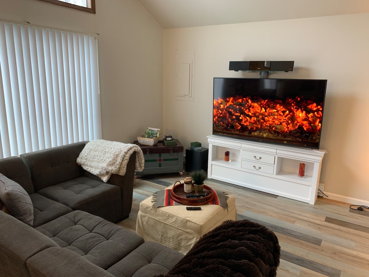Затишок у цьому затишному та бездоганному заміському будинку з 2 спальнями, укомплектований усіма зручностями, щоб ви почувалися як удома; приватна гідромасажна ванна на 4 особи. Повністю обладнана кухня, кав 'ярня, 3 смарт-телевізори, барбекю, настільні ігри та приватне робоче місце. Відпочиньте в закритій гідромасажній ванні під зірками та мерехтливими вогнями - дощем, снігом або смажте зефір над чашею для багаття. 5 хвилин до озера Каробет. 7 хвилин до національного парку Тобіханна. 15 хв до КАЛАХАРІ 20 хвилин до CAMELBACK & MOUNT AIRY 25 хвилин до торгових точок преміум-класу.
